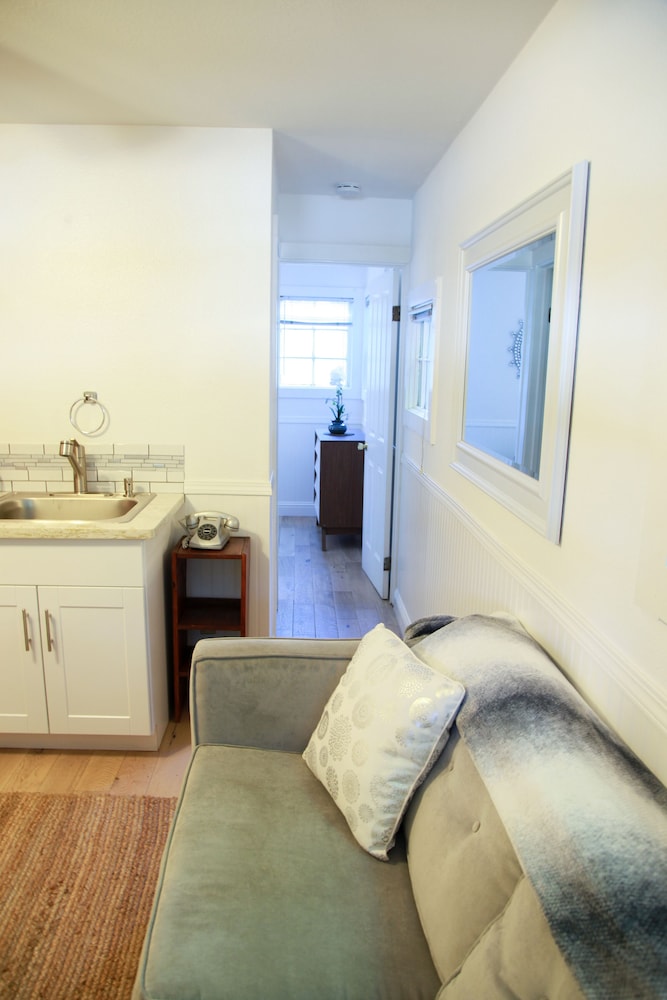 Liked the location: close to the ocean, Bodega Bay, Armstrong Redwoods, Russian River and Guerneville. But, the parking lot was very small and what we missed was a table and chair in the room to eat a meal and do computer.