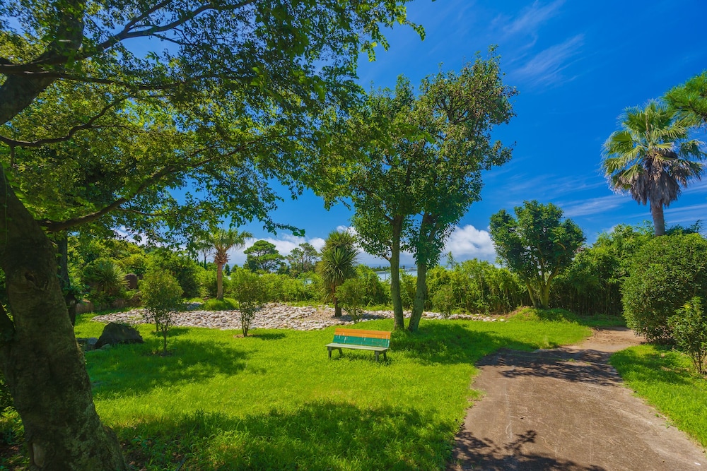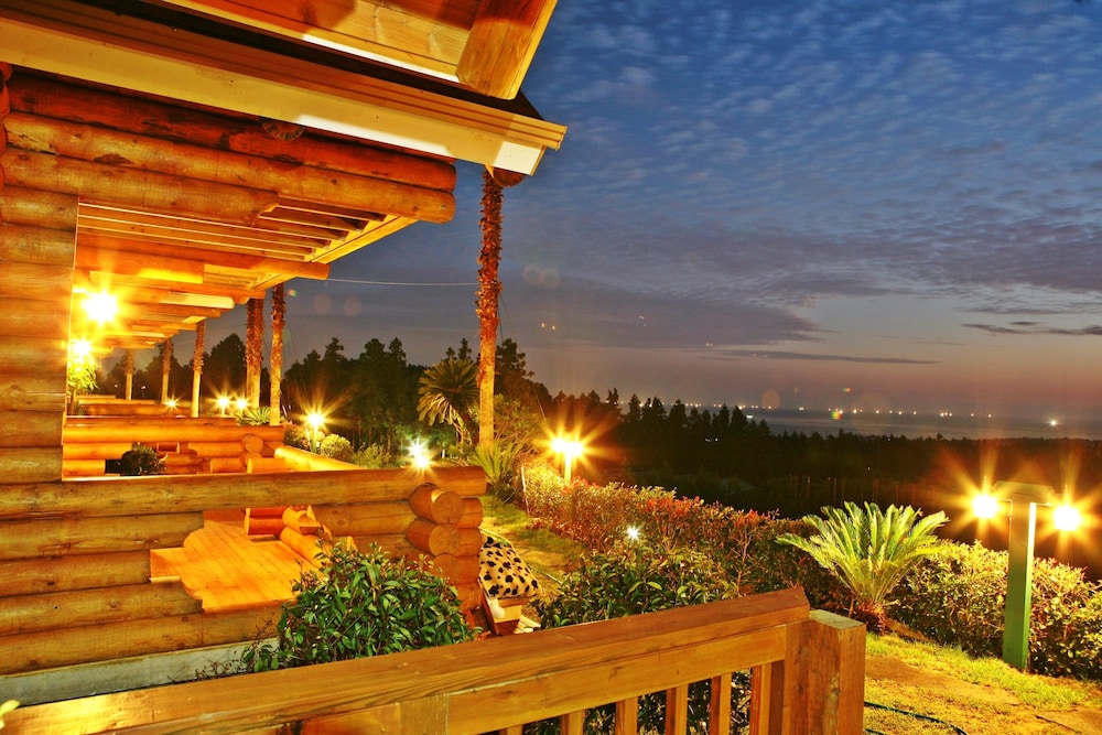 Enjoy stunning views from the terrace and garden offered by Jeju Jungmun Log Pension & Resort.