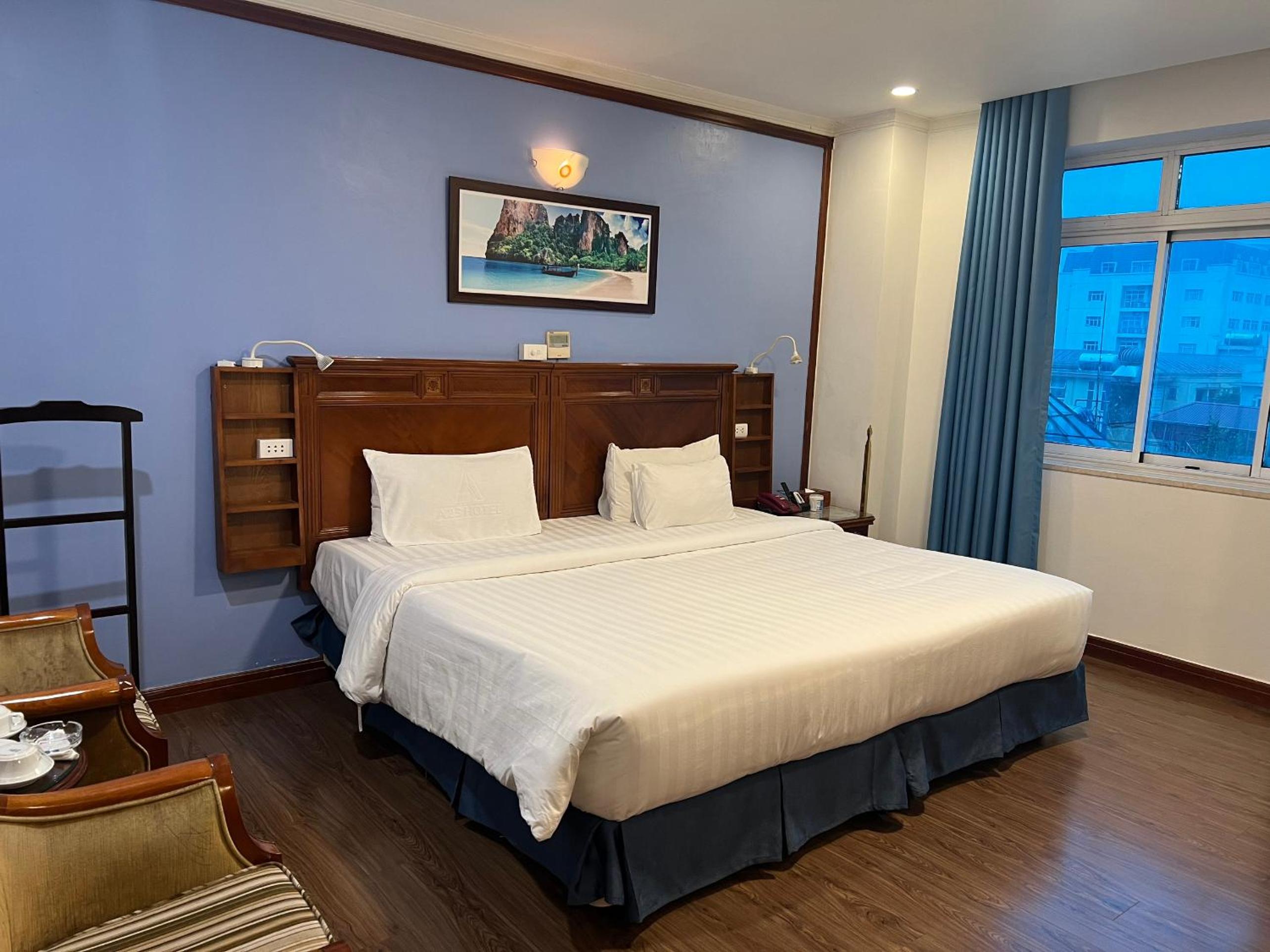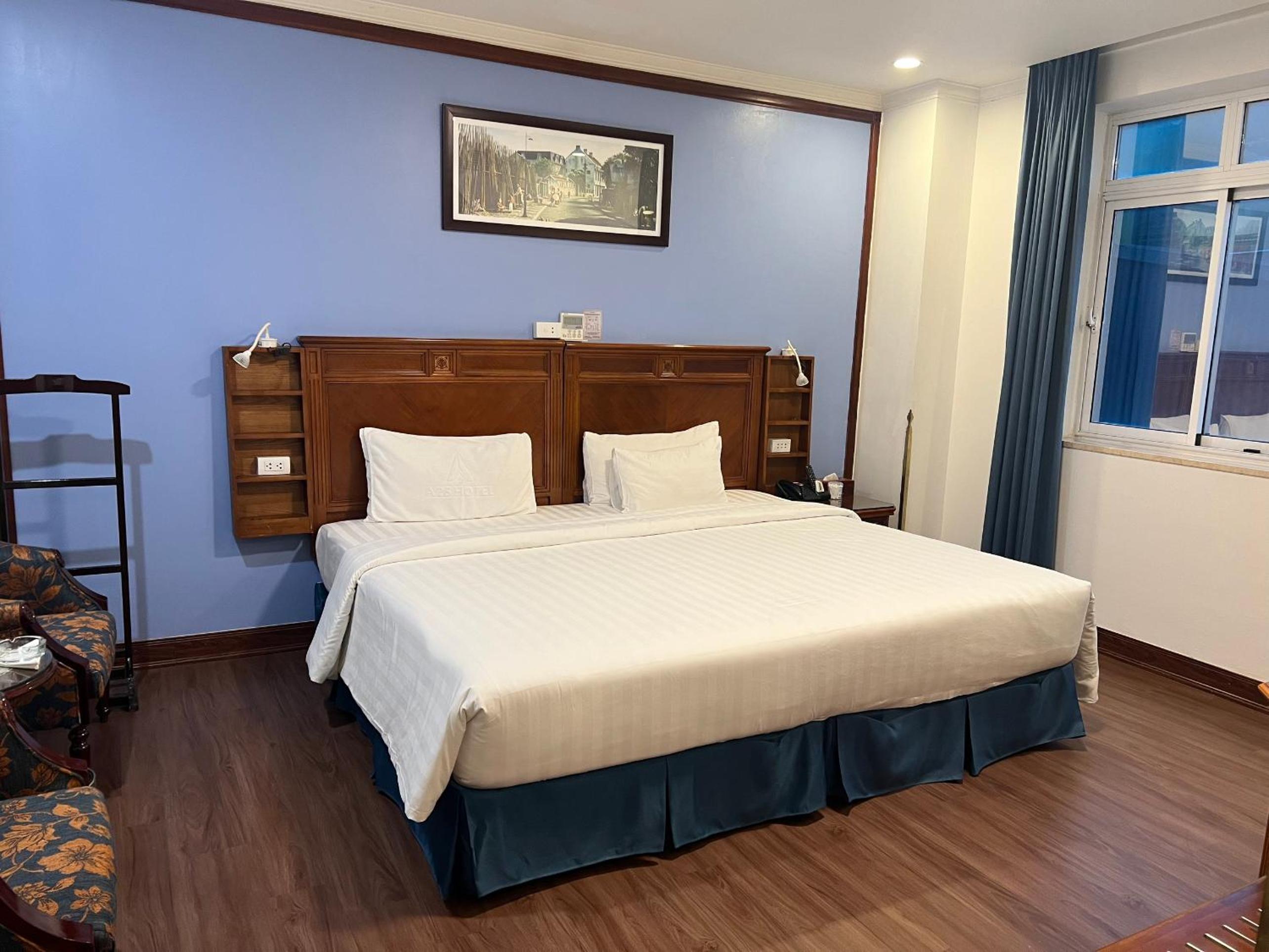 De ruime kamer zonder ramen. Eerst vond ik dat raar maar het was een oase van rust in het chaotische Hanoi. Het bed was ook prima en heel groot. Personeel is ontzettend vriendelijk