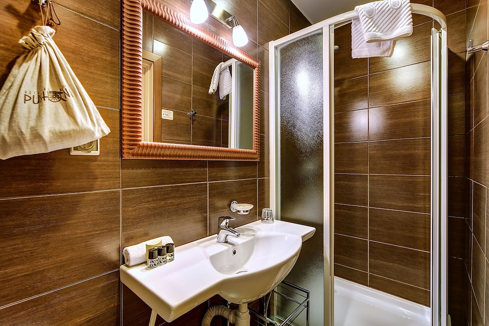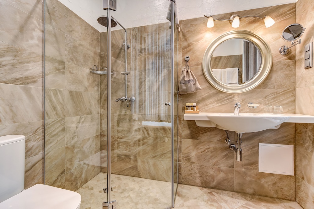 The room had everything one might need, and was very clean. The bathroom had a great shower with both rain and hand-held shower heads, and even had a heated floor - which was really nice for taking a shower! The bathroom was very well organized and had a lot of storage and hooks to put your stuff away.