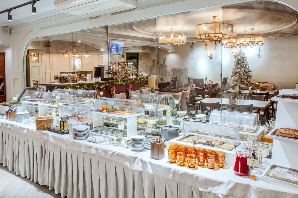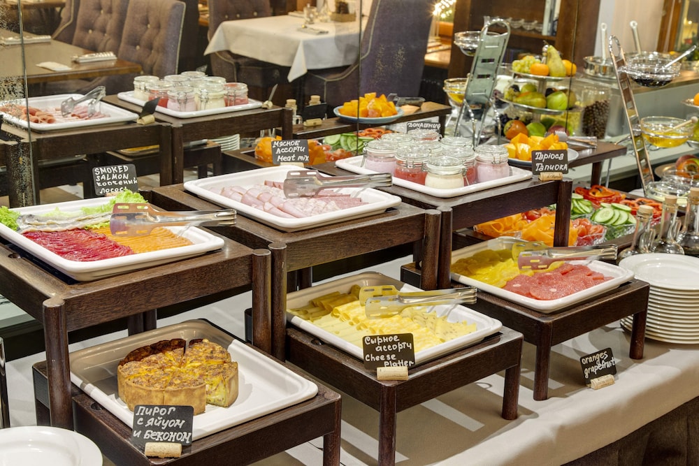 The restaurant on the property is A+++++!!!! Outstanding! Try the beef stroganoff!!!! Quality decision. The front desk is amazing and their English perfect! The location is right next to the Hermitage Museum. GO THERE!