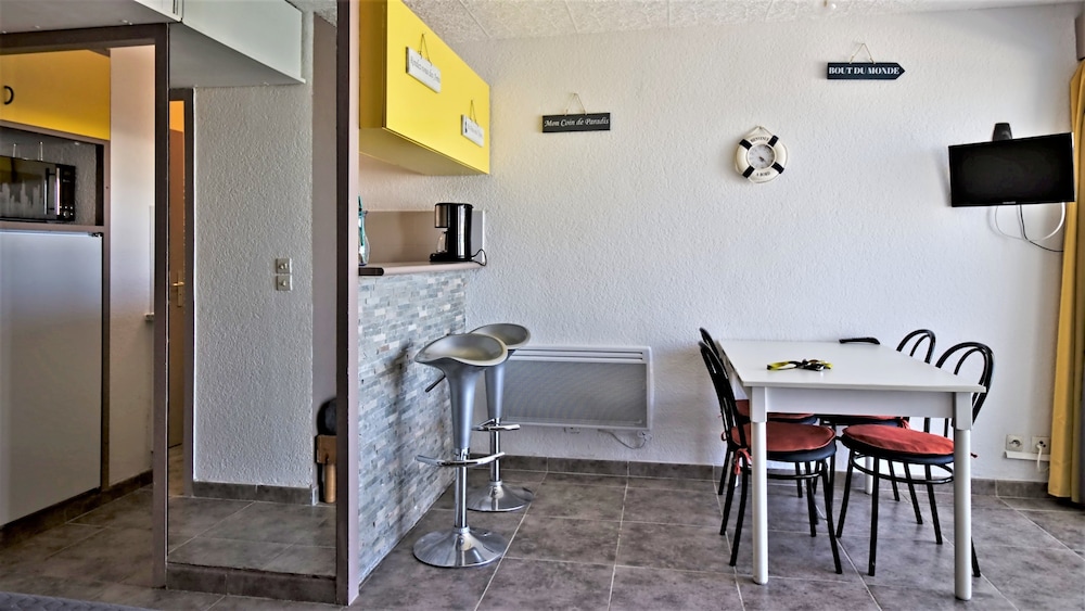 Séjour de 3 jour pour 3 adultes. Beau studio bien agencé avec terrasse où l'on peut manger. Espace agréable, très belle vue face à la mer et à la piscine. Tout confort, bien équipé au niveau électro-ménager. Parking en sous-sol avec ascenseur, pratique pour transporter les bagages. Possibilité de faire de bonnes ballades à pieds ou en vélo, voies aménagées pour. Près de la plage, près de restaurants, épiceries, commerces alimentaires.