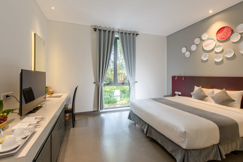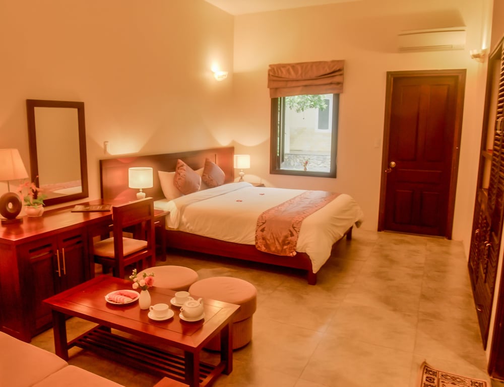 Rất ít hoa, có thể trồng ít bụi hoa hồng phù hợp với thời tiết vì hoa hồng tiểu muội cũng dễ trồng như resort Hương Giang Huế họ có trồng hoa hồng bụi và nó thích nghi. Nhận phòng quá muộn, 14h mới nhận phòng trong khi 11h đã trả phòng, không phù hợp vì khách bao giờ cũng trả phòng trước 11h. Tâm lý ai cũng muốn nằm nghỉ 1 chút lúc trưa nóng.