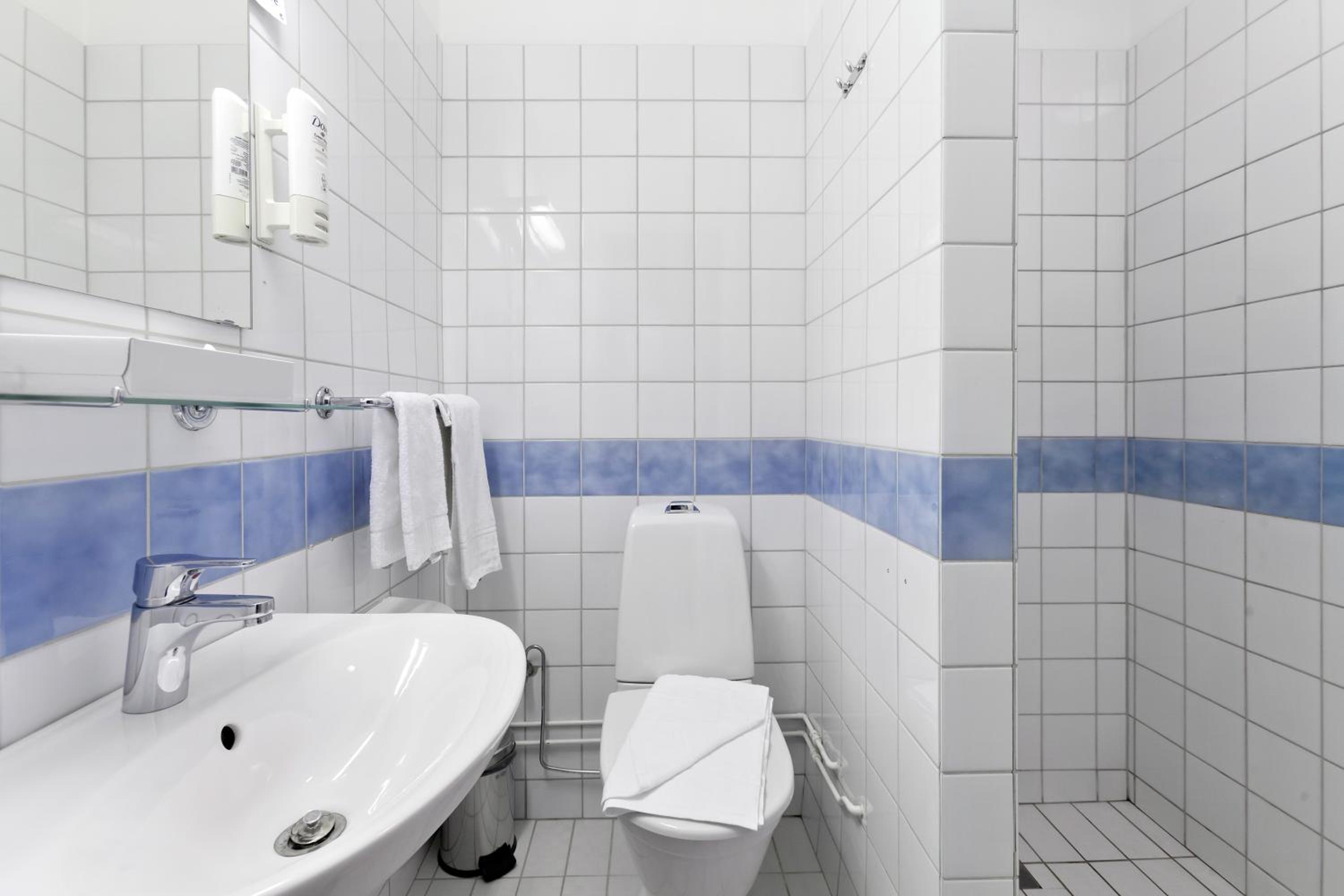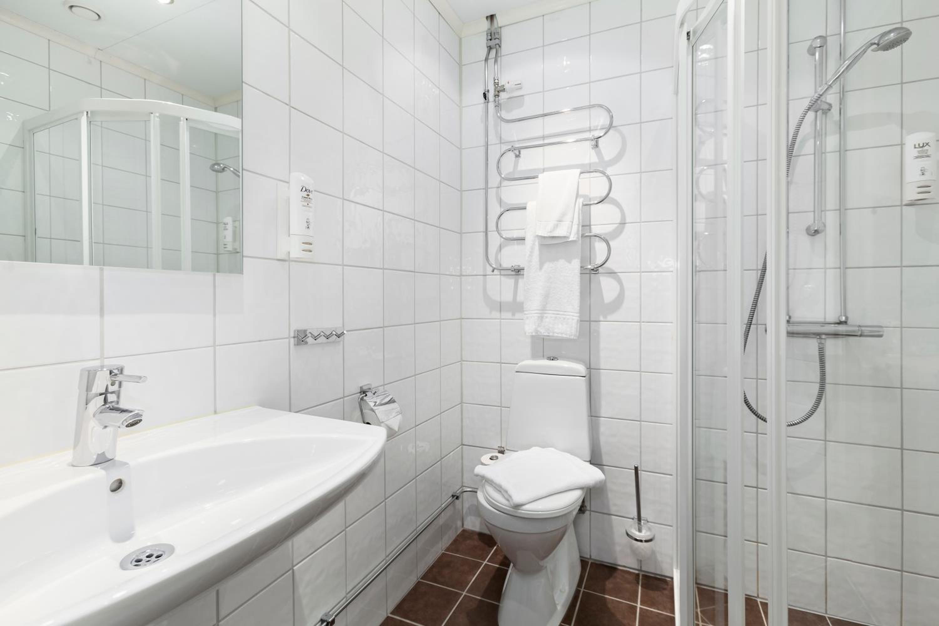 Each room at Stadshotellet features a convenient work desk and a private bathroom equipped with a shower, hairdryer, and complimentary bathroom amenities.