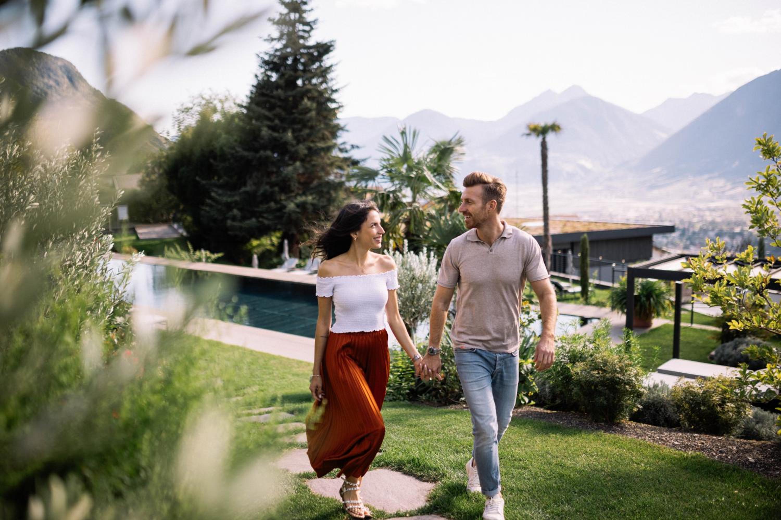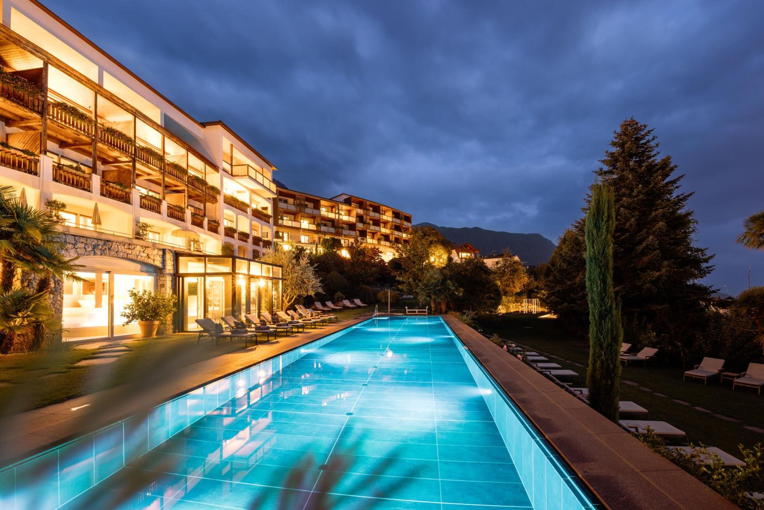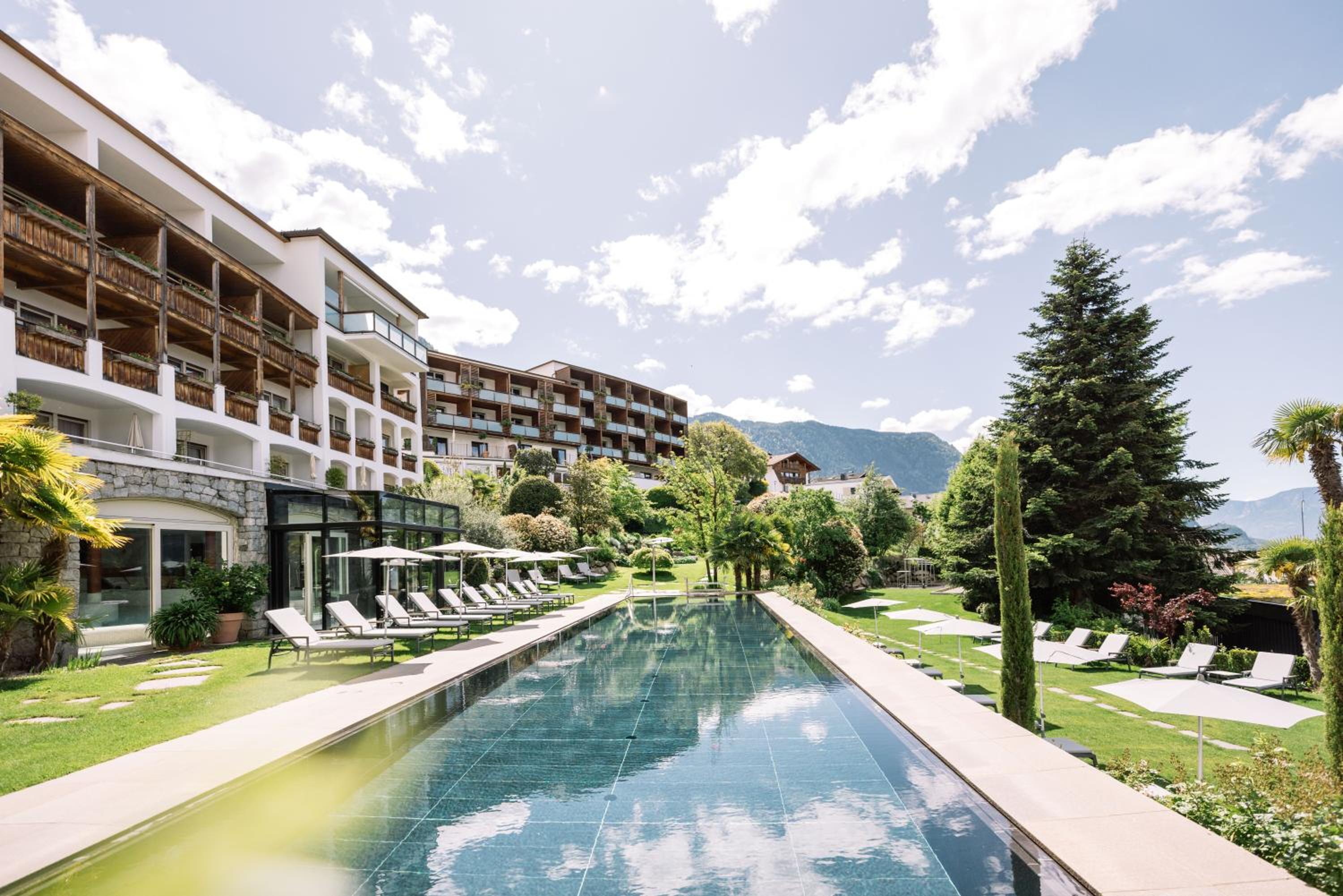 Sehr noble familiengeführte Hotelanlage mit optimalen Lage zum Wandern oder zum Ausflug nach Meran.