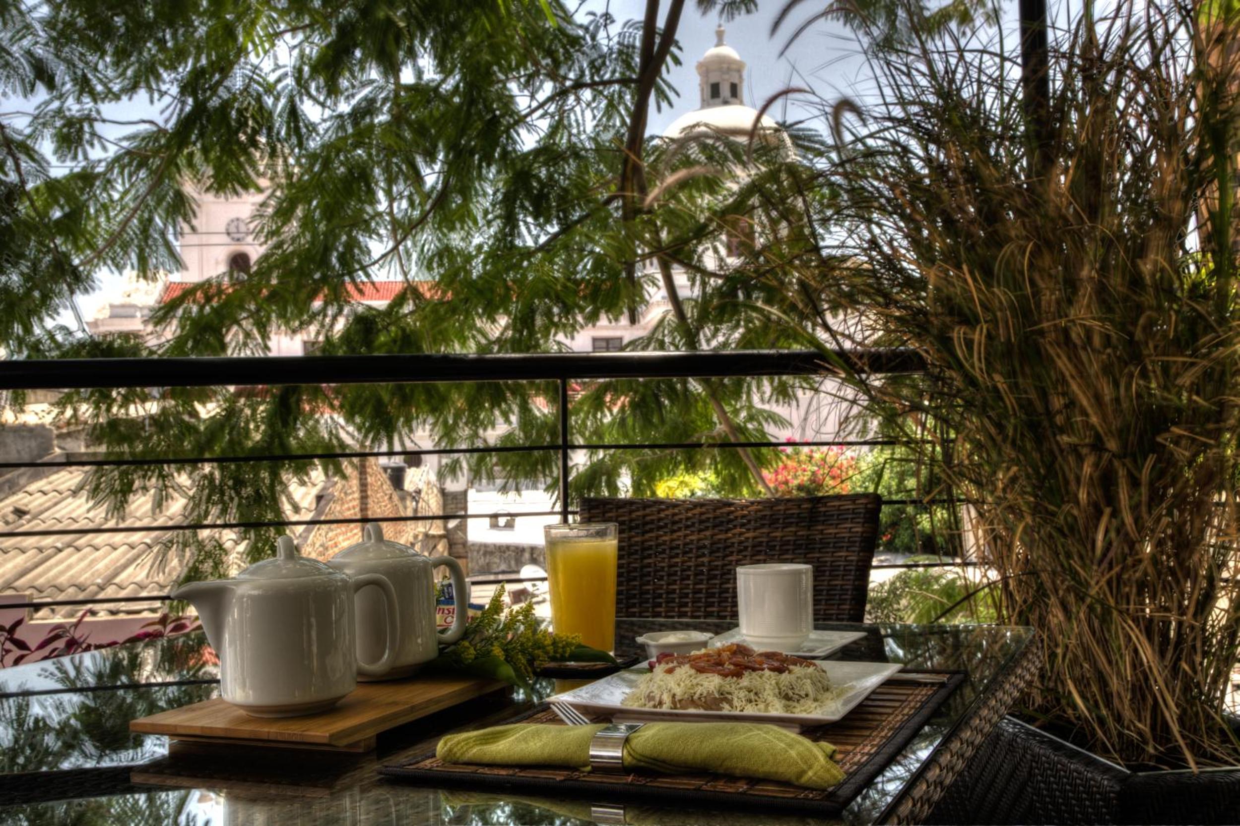 Klasyczny, klimatyczny wystrój w stylu kolonialnym.Bylismy grupą ośmiu osób,w trakcie naszego pobytu w Santa Marta niestety padał ulewny deszcz i nie było jak wieczorem skorzystać z uroków miasta...Personel pozwolił nam na prywatne biesiadowanie na dachu restauracyjnym...