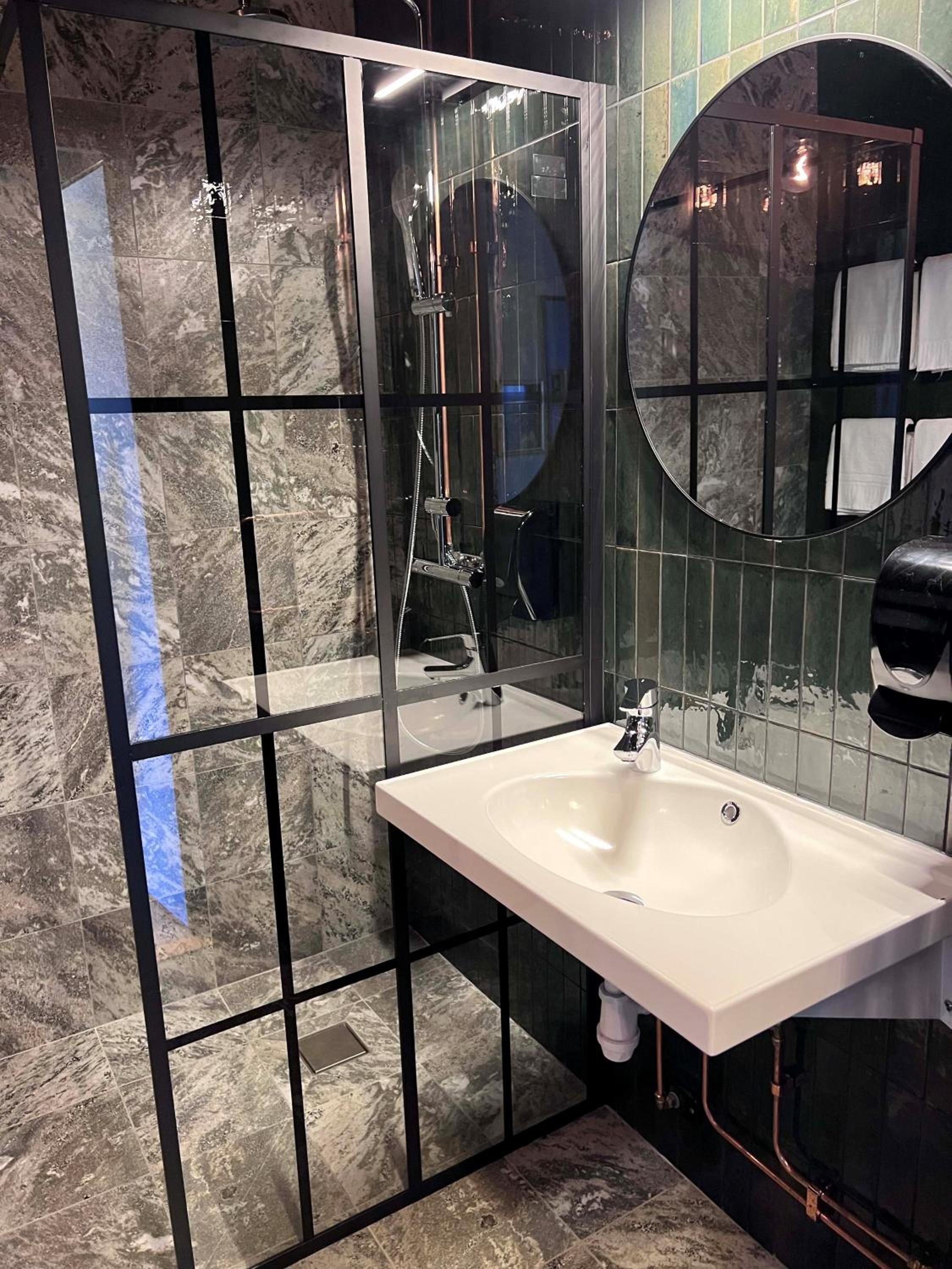 Trevlig kvällsbuffé samt frukos. Fin inredning i lobby och gemensam utrymmen. Trevlig tjej i lobbyn. Fungerade fint för en natt innan halvvasan.