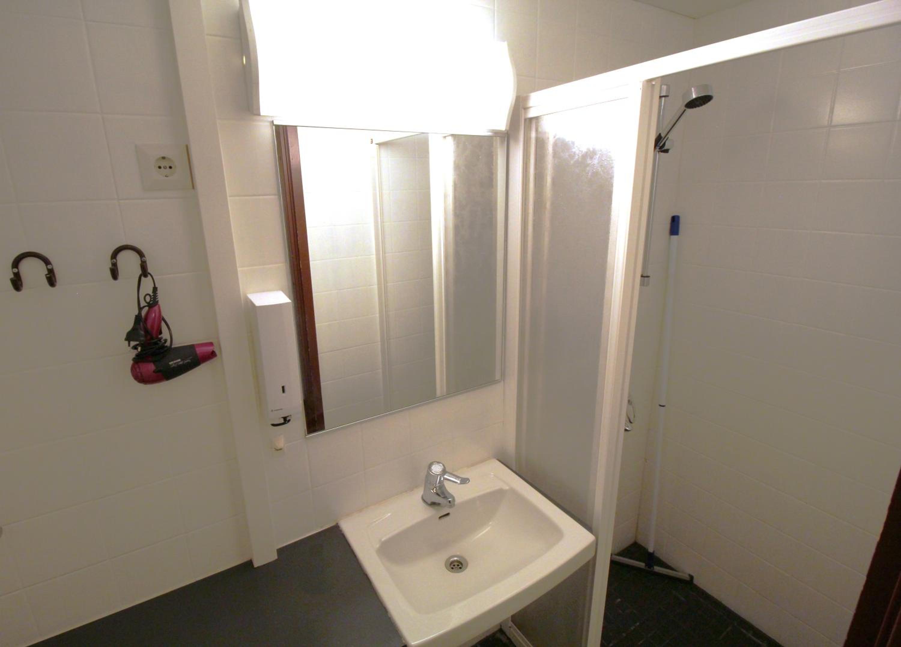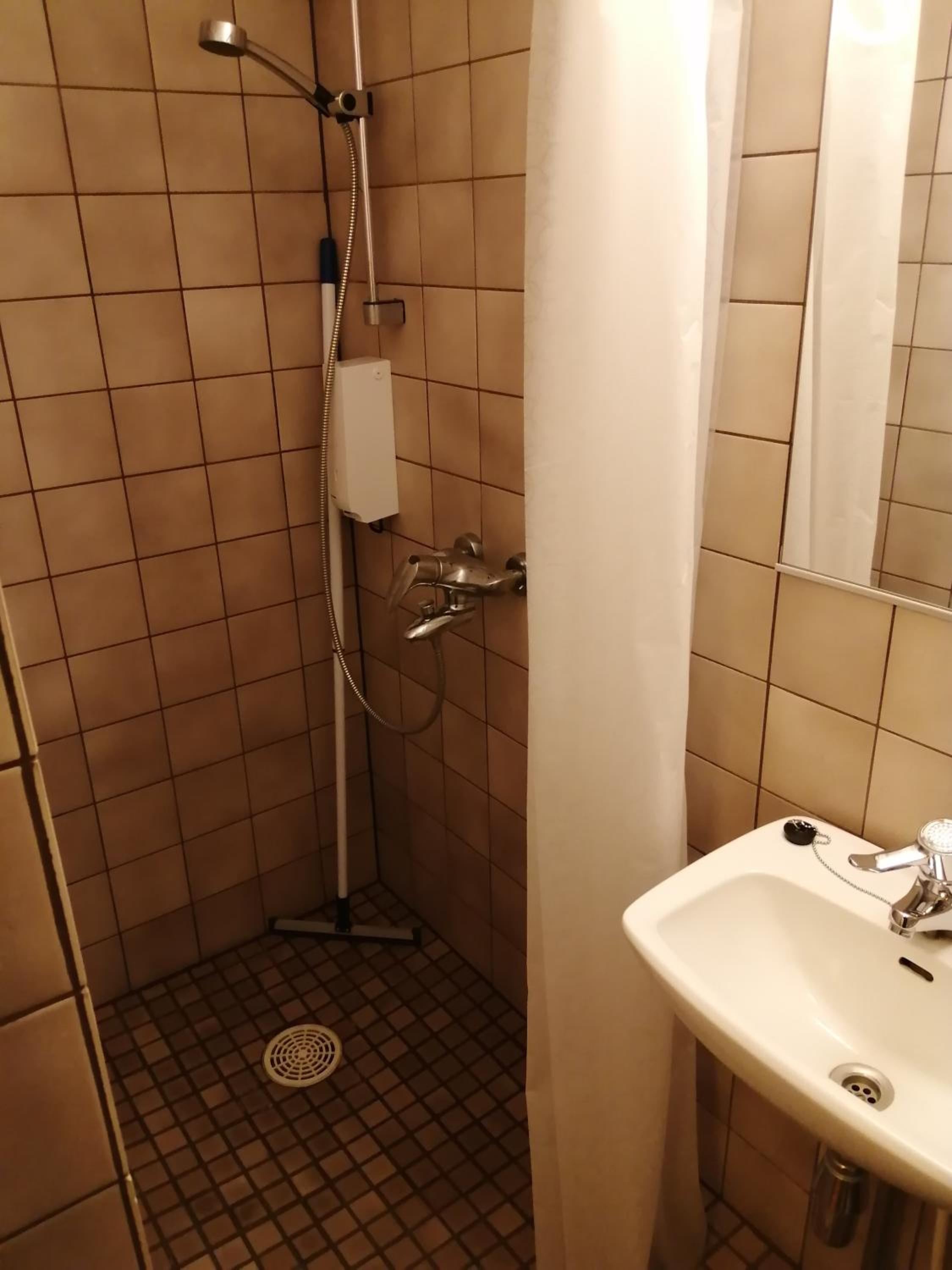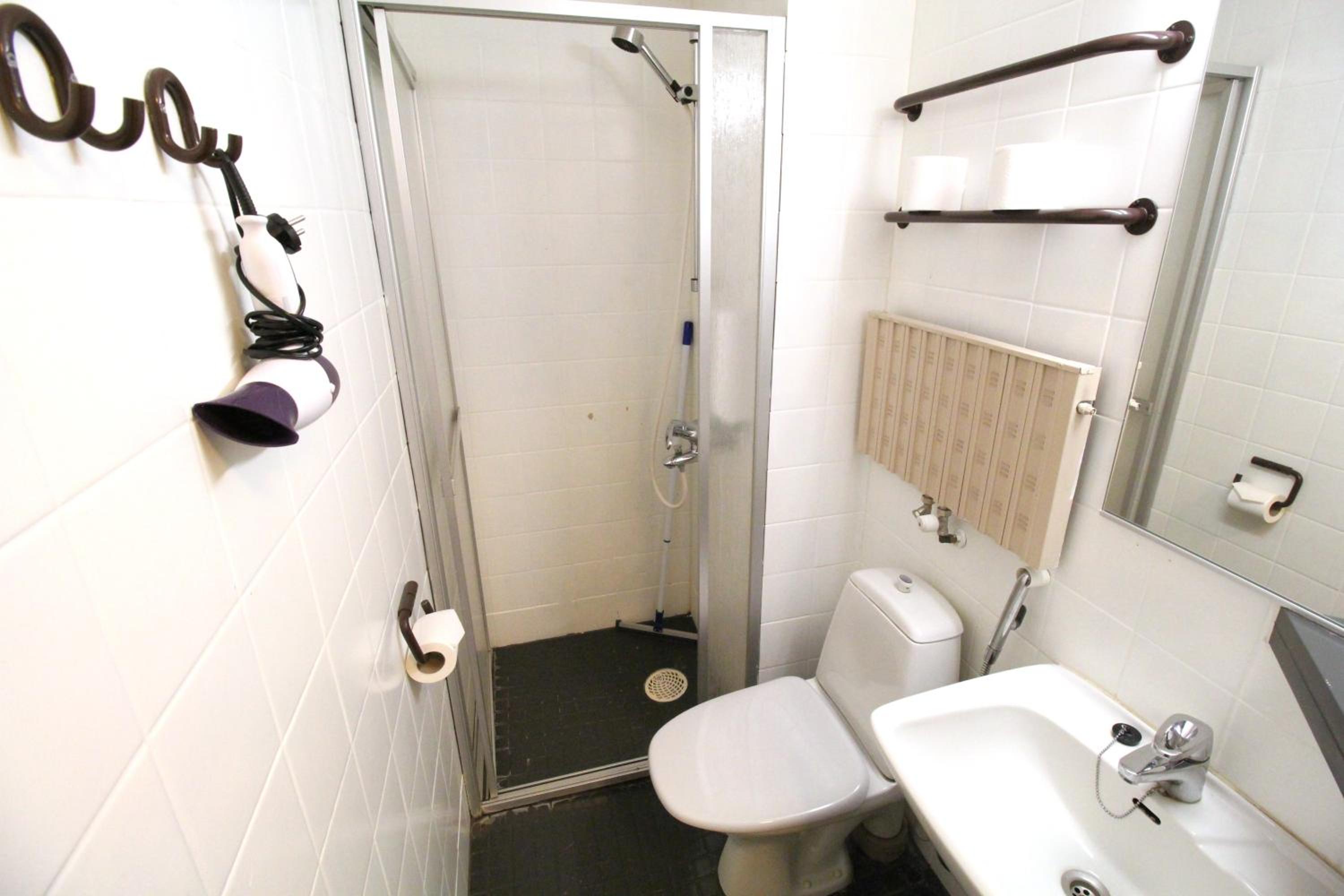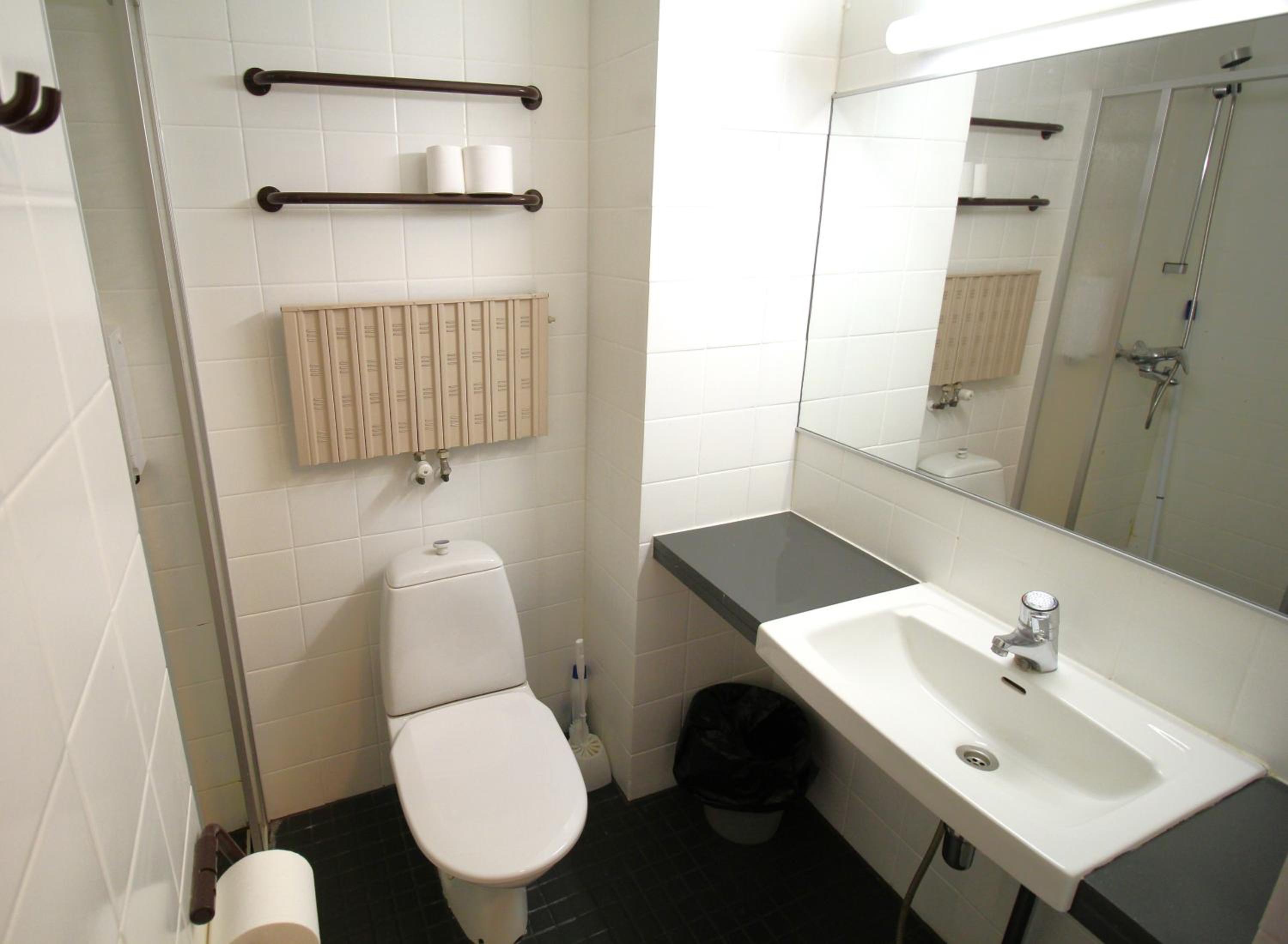 Huone oli aika lämmin vaikka maaliskuun alussa yövyttiin. Vessa oli epäsiistin näköinen kun maalit oli lähtenyt seinästä ja lattiasta.