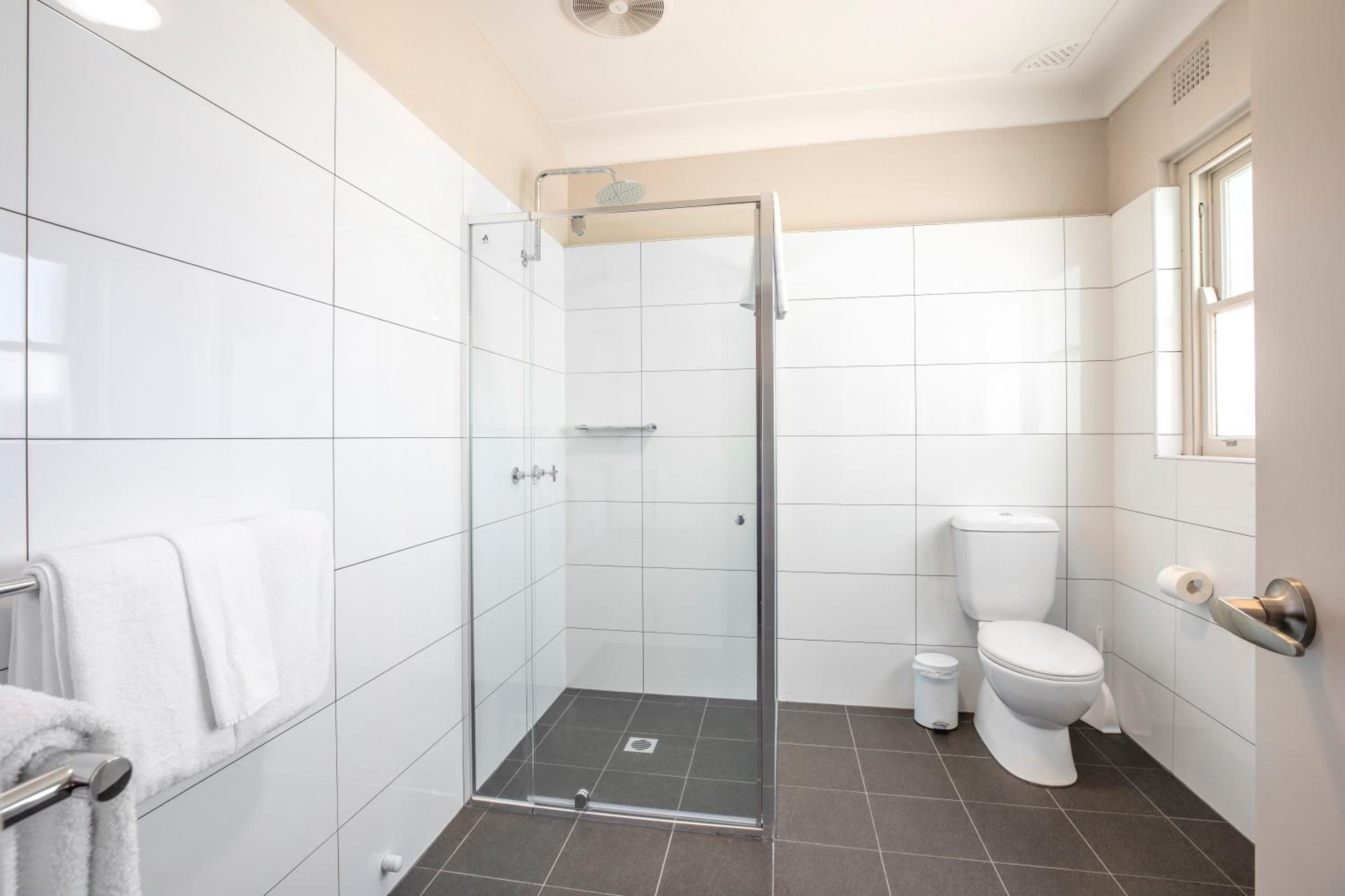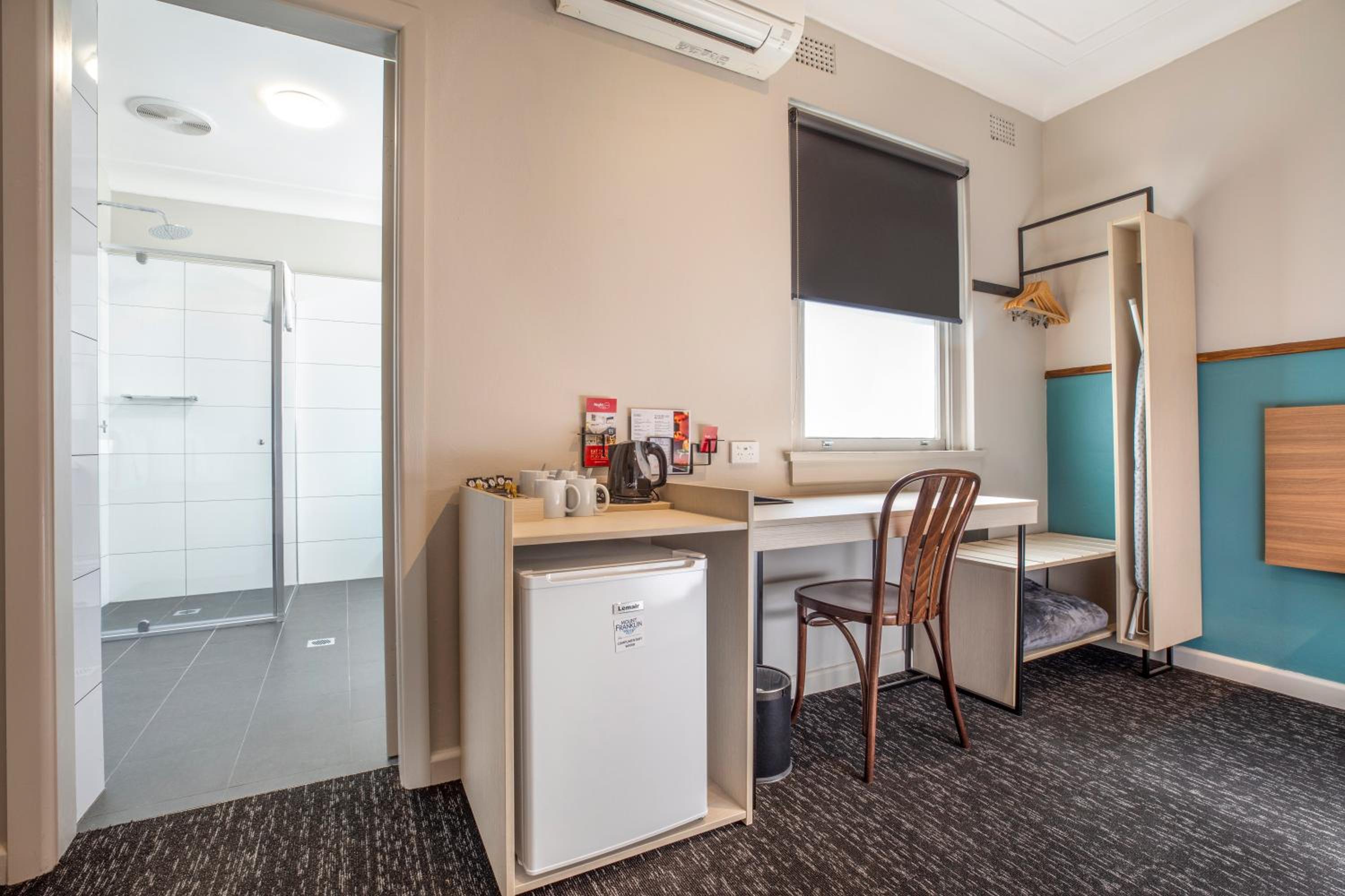 Large room and bathroom all showing signs of good updates compared to the age of the building itself. Clean and tidy. Complementary water in the room fridge. Plenty of fast food, bakery, takeaway and dine-in options very nearby.