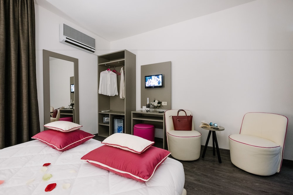 Par contre nous avons été très déçus par l'accueil de la dame de la réception ... Nous avions payés pour une piscine et une plage privée et à notre arrivée cette dame nous dit qu'il n'y a rien de tout cela ... Après un appel au site de réservation, le patron de l'hôtel nous informe qu'il y a bien une piscine (dans un autre hôtel qui se trouve à 5min à pied) et qu'il y a également la plage privée (5min en voiture, pas possible de le faire à pied en vu de la route). Donc un peu déçu sur l'accueil des personnes de cet hôtel. C'est dommage car le reste était top.
