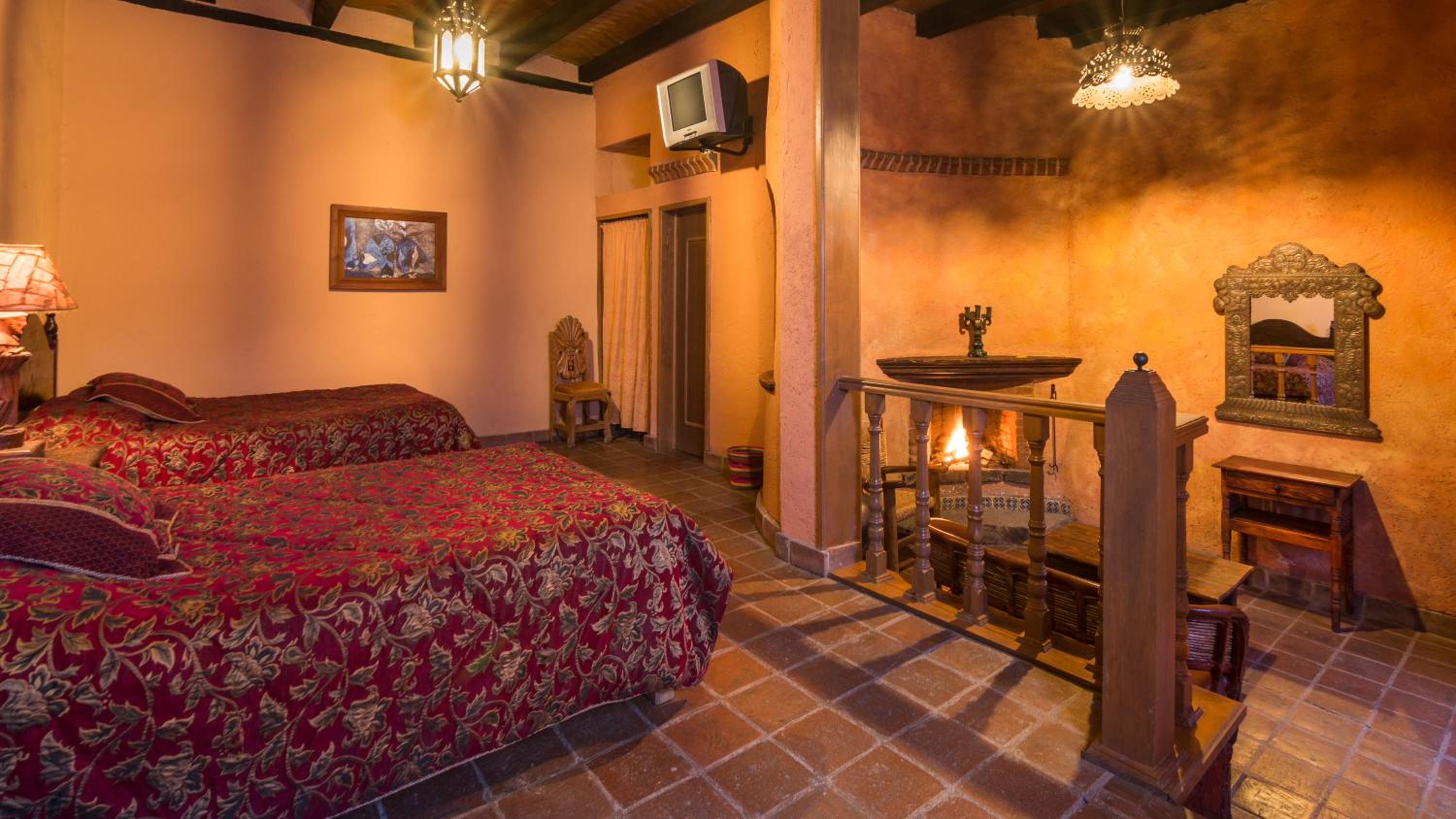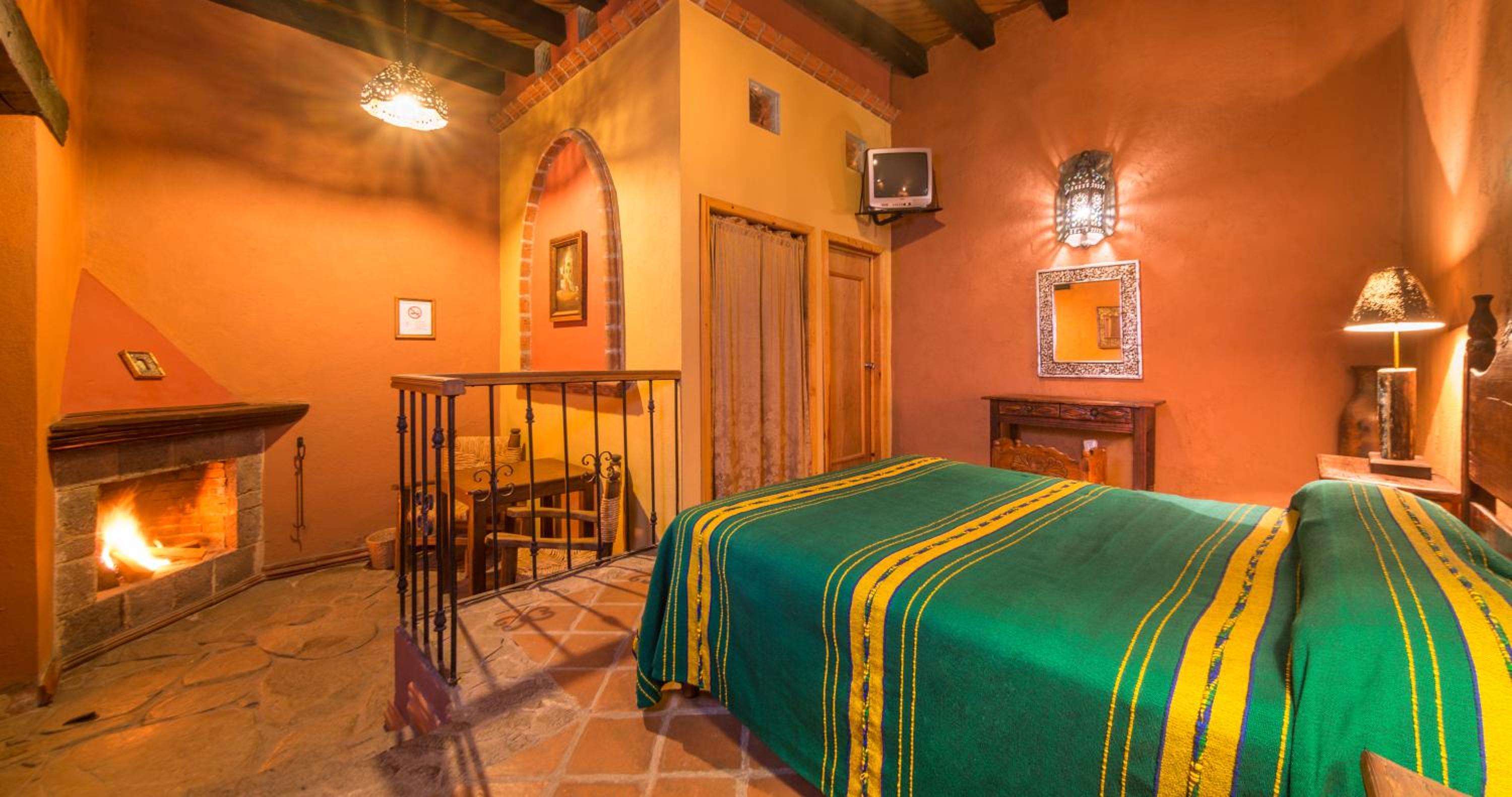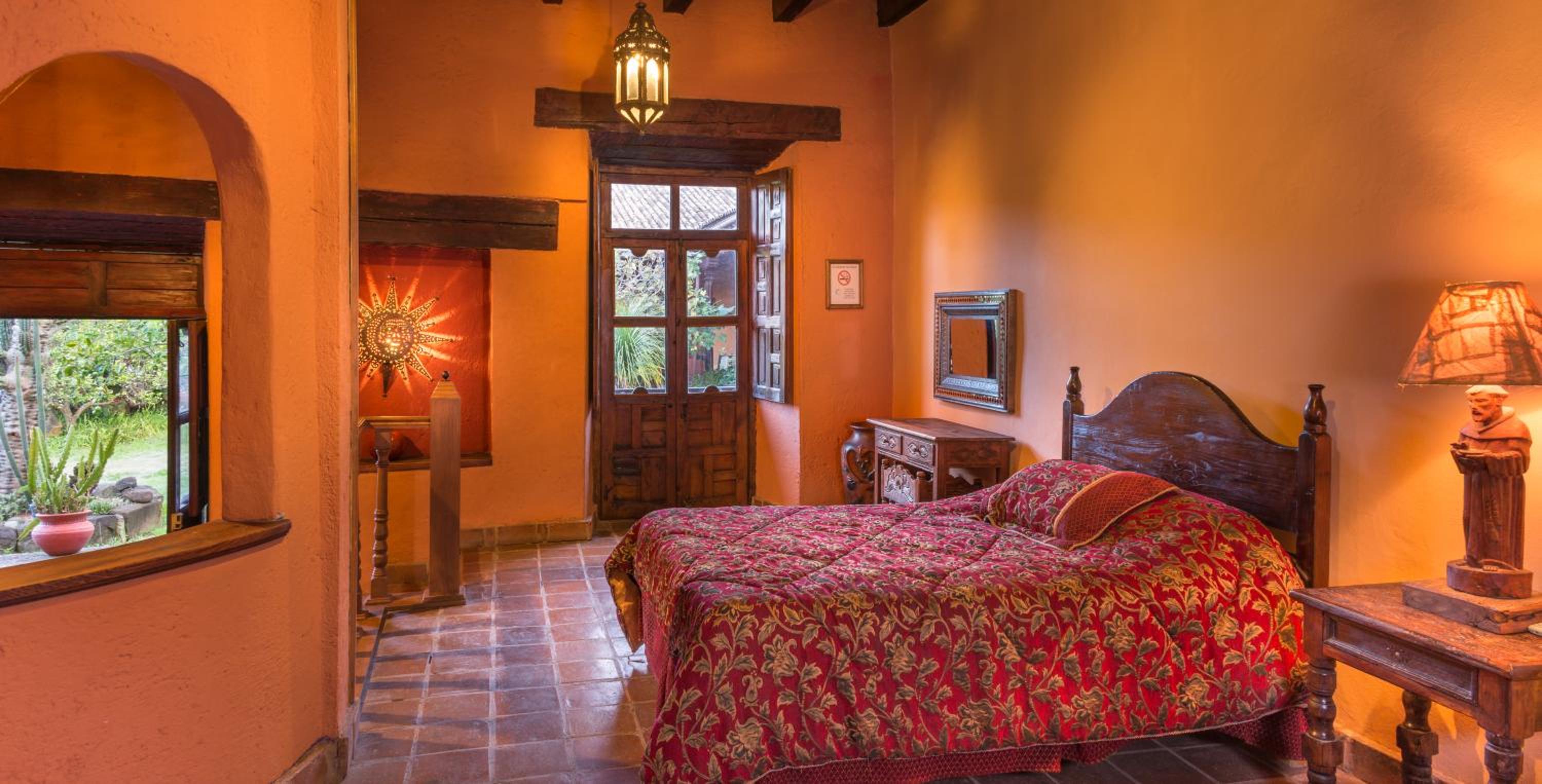 Experience the charm of Meson de San Antonio, a colonial-style mansion located just steps away from the Basilica of Nuestra Señora de la Salud. Surrounded by extensive gardens, our rooms feature free Wi-Fi, rustic stone fireplaces, and picturesque garden views.