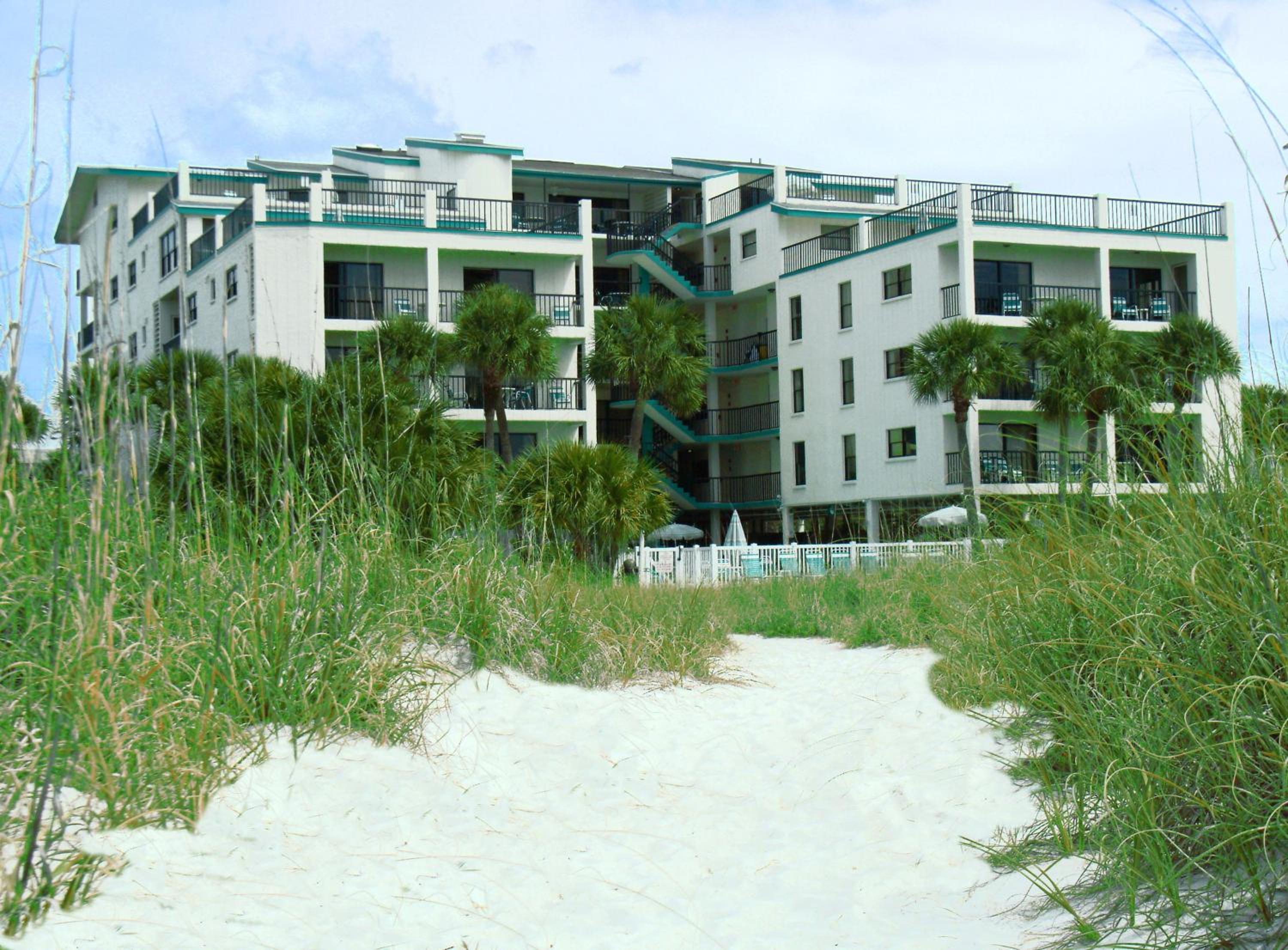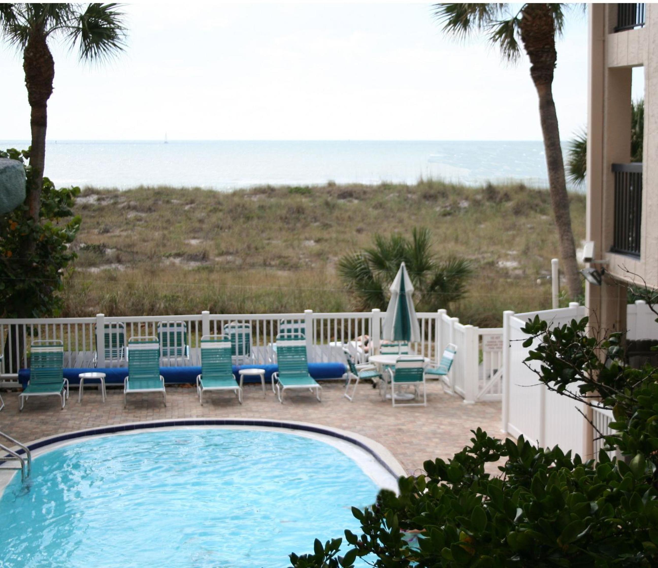 Location. Location. Location! Right on the beach. Beautiful view. Located 1 block away from shopping/dining/tourist area. John's Pass on Madeira Beach. It's a timeshare and has a full kitchen and washer/drier.