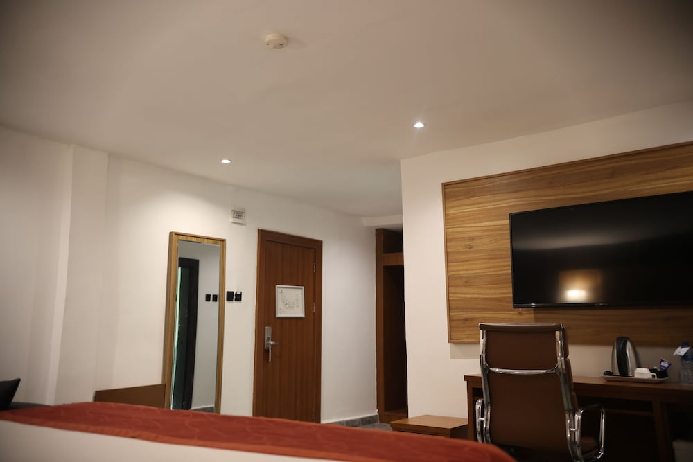 We did not know what to expect upon arrival but by the end of our 15 night stay we left very impressed with the room, the room service and the Customer care, it was good to see the buffet breakfast which had a variety of European, African and Asian cuisine which is impressive. There is 24 hour security and Electricity also the location is ideal. The Hotel also provided airport pickup and drop-off. We would highly recommend this Hotel.