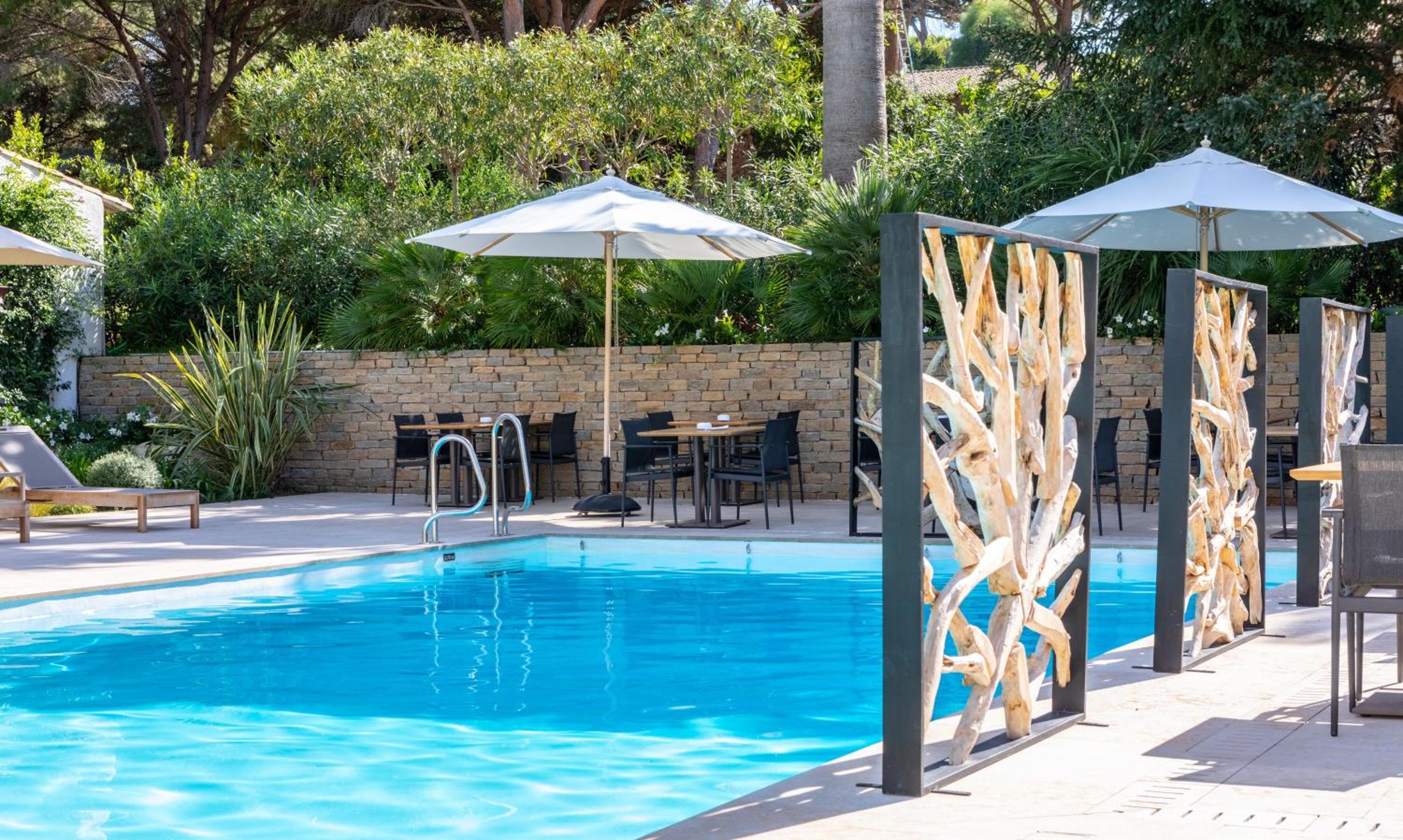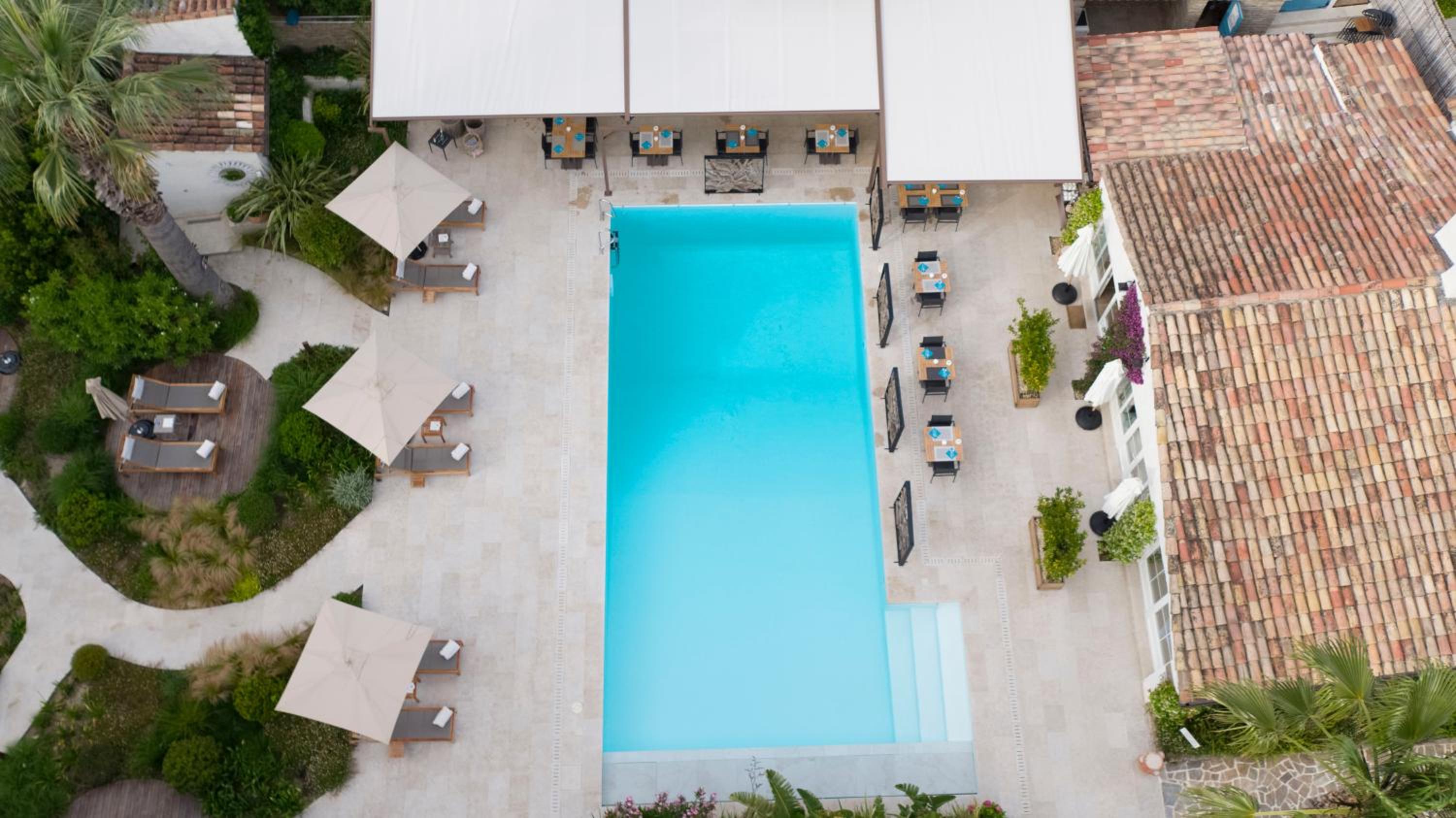 Joli petit hôtel, très soigné et raffiné, calme, très grande chambre avec une belle terrasse. Personnel charmant et très disponible pour aider. Service très rapide et navettes très pratiques pour aller à St Tropez