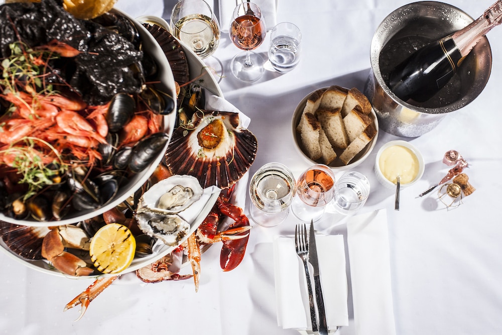 Fantastisk spa, middagen var ikke bra, svidd biff og en elendig kongekrabbe til forrett. Servitøren var blid og høflig men treig og sølte hver gang han helte noe oppi glasset. Kjempegode drinker i baren og en kjempebra frokost. Kommer nok tilbake men da uten middag der..