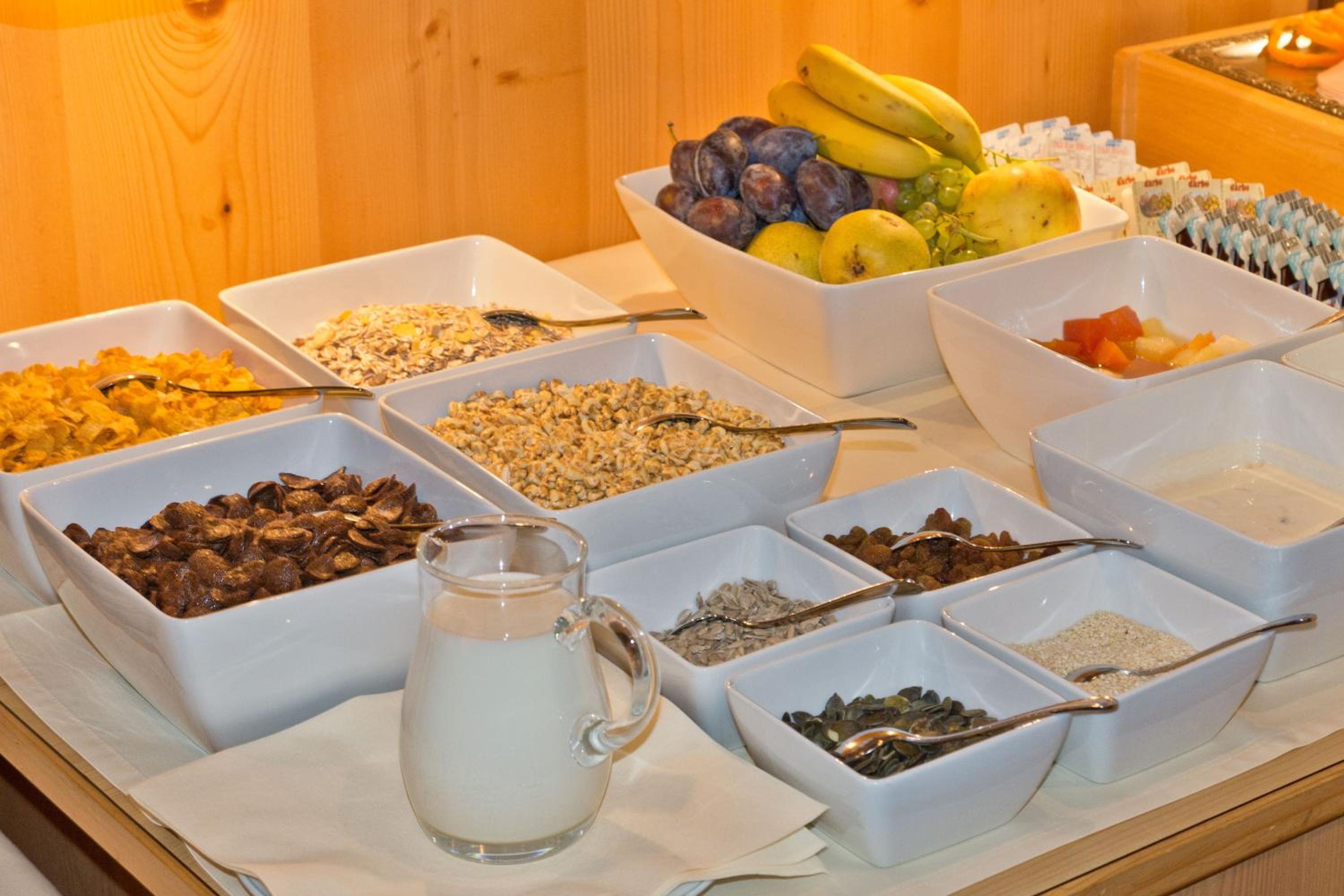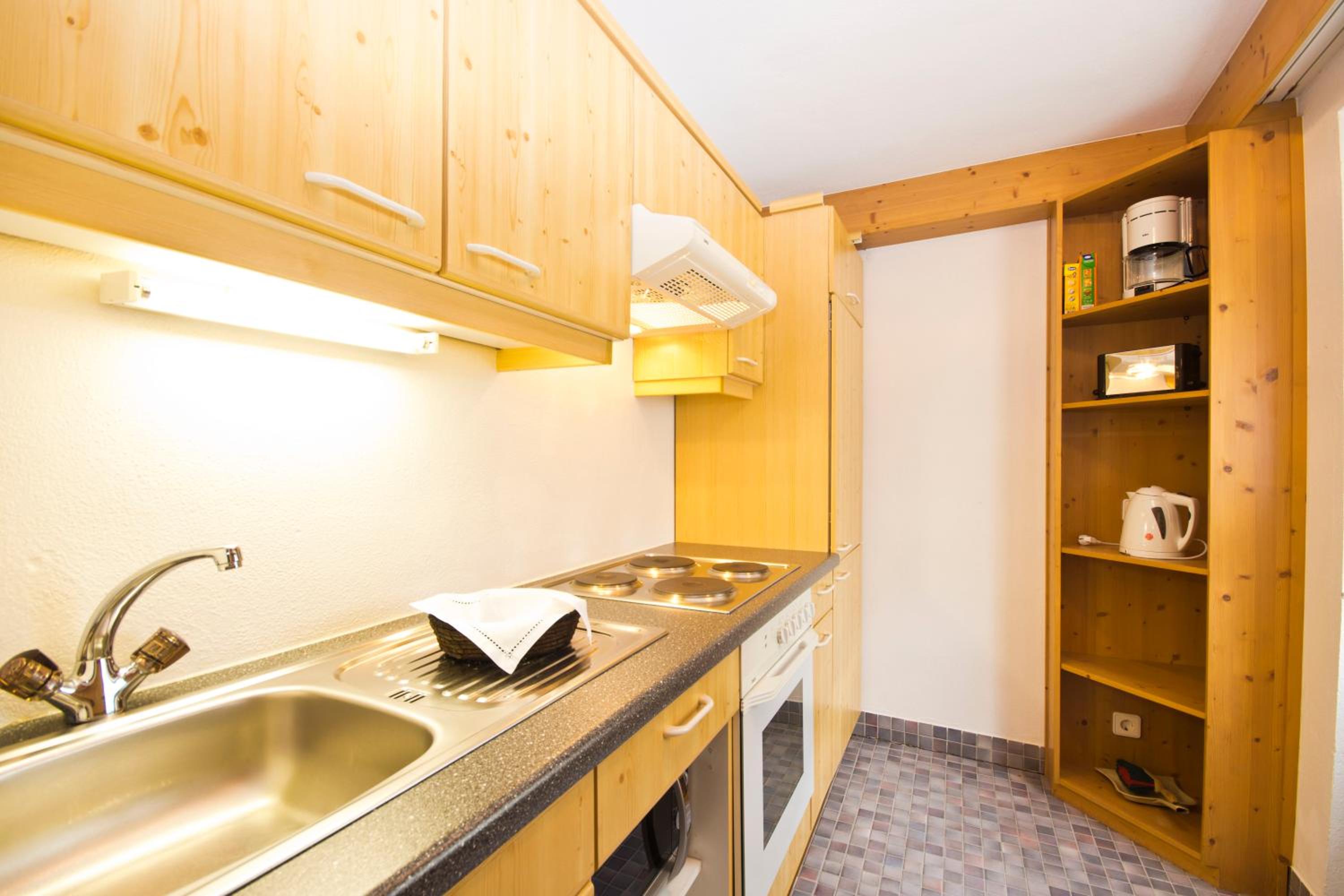 Aamiaiset valmistimme itse, huoneistossa oli keittotila. Aamiaiset olivat herkulliset, kiitos vaimolle. Sijainti on rauhallinen ei aivan vilkkaimalla alueella. Kuitenkin keskustassa. Bussipysäkki hotellin edessä. Kesällä oleskelun hintaan kuuluu Sommerkarte, jolla pääsee ilmaiseksi rinnehisseihin, kylpylään, museoihin ja busseihin. Erittäin arvokas lisä.