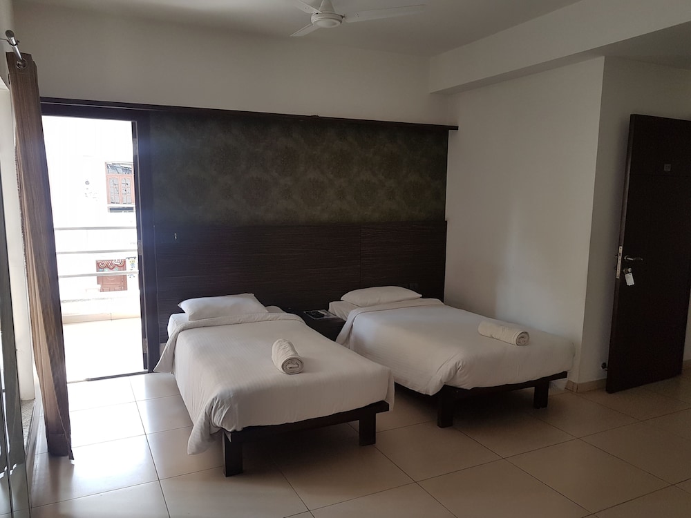 Its a service apartment stay and is clean and cheap. The location is decent and is relatively quite and rooms are clean and decent.