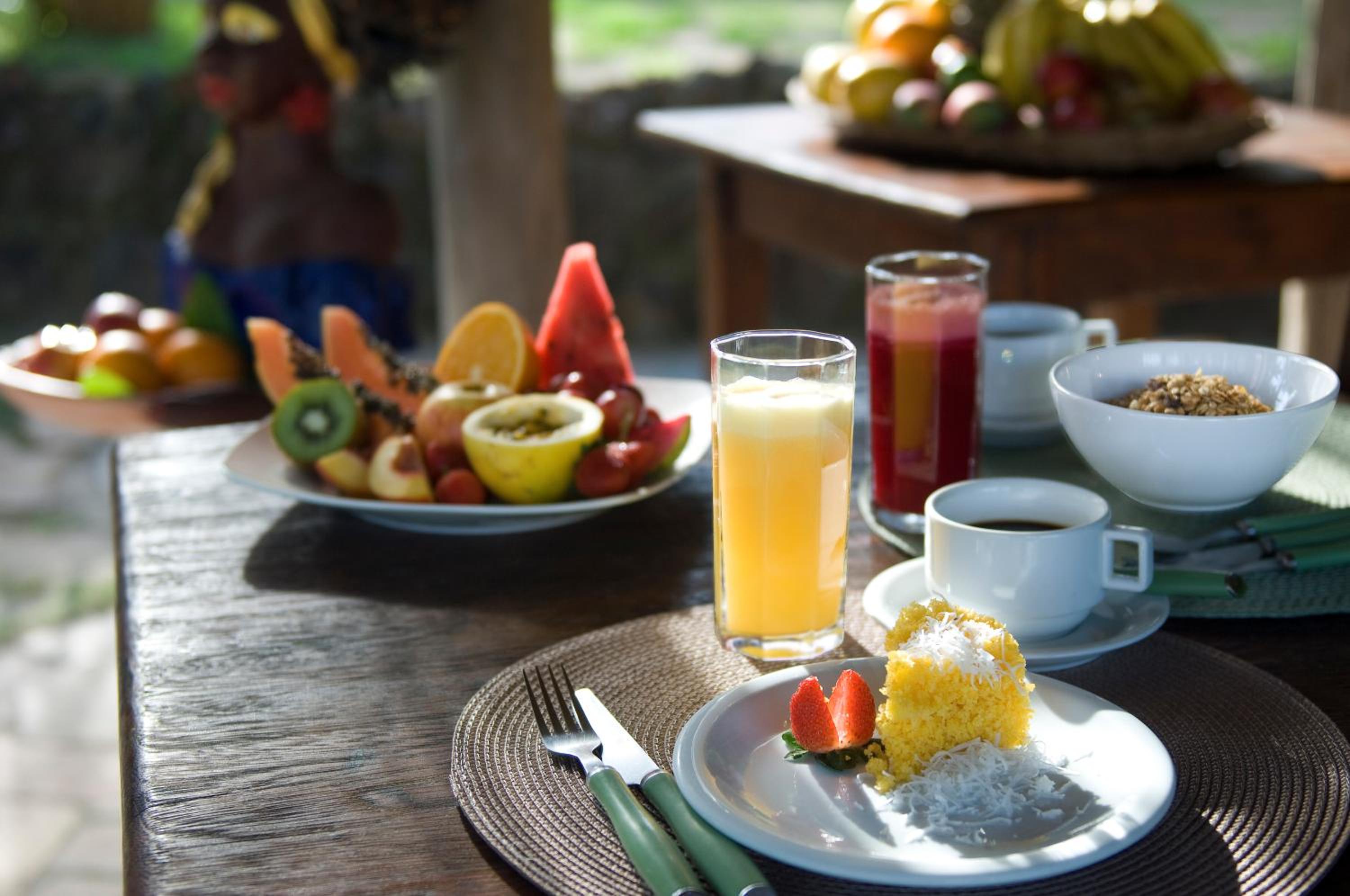 O clima muito agradável, atendimento excelente e um ótimo café da manhã!