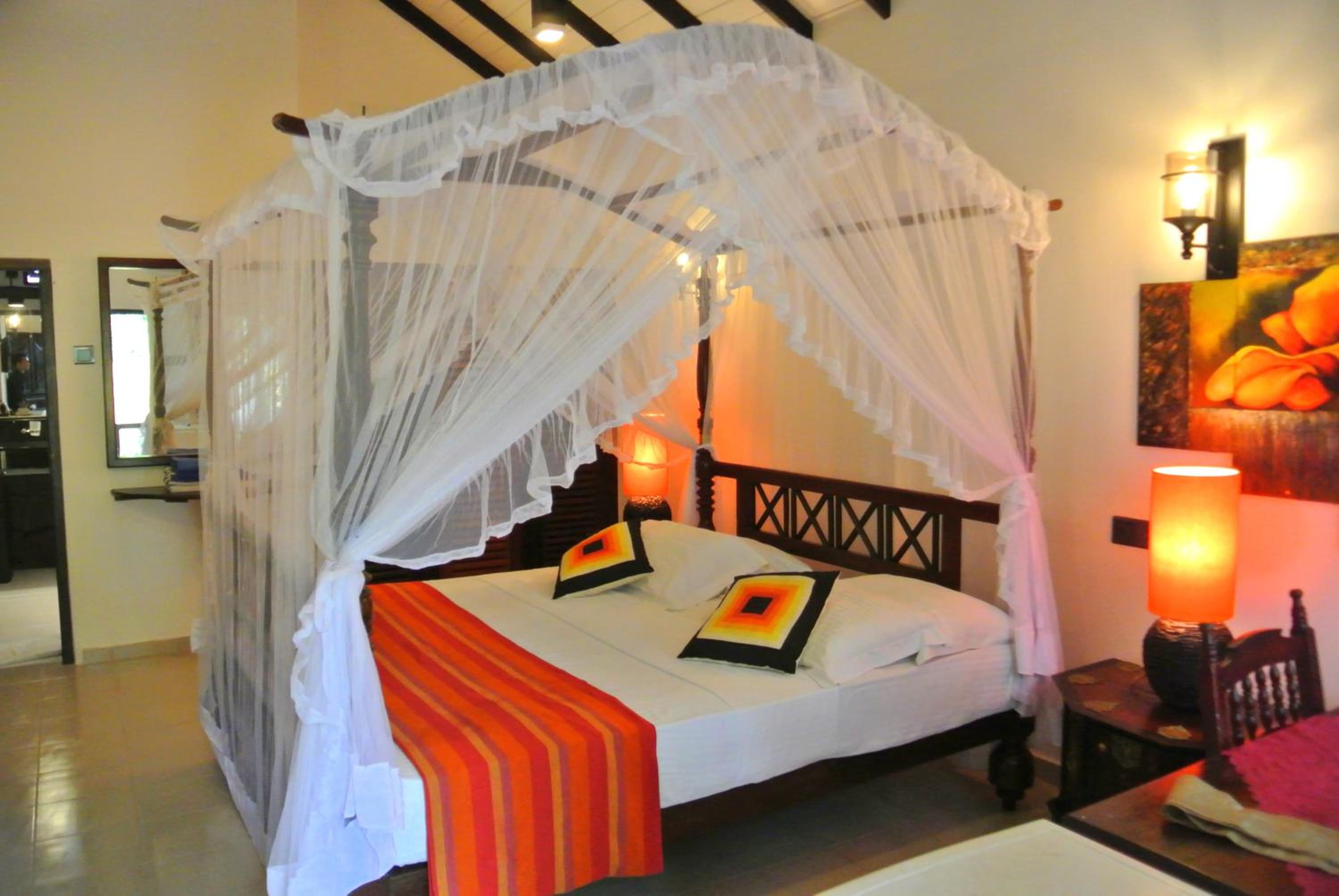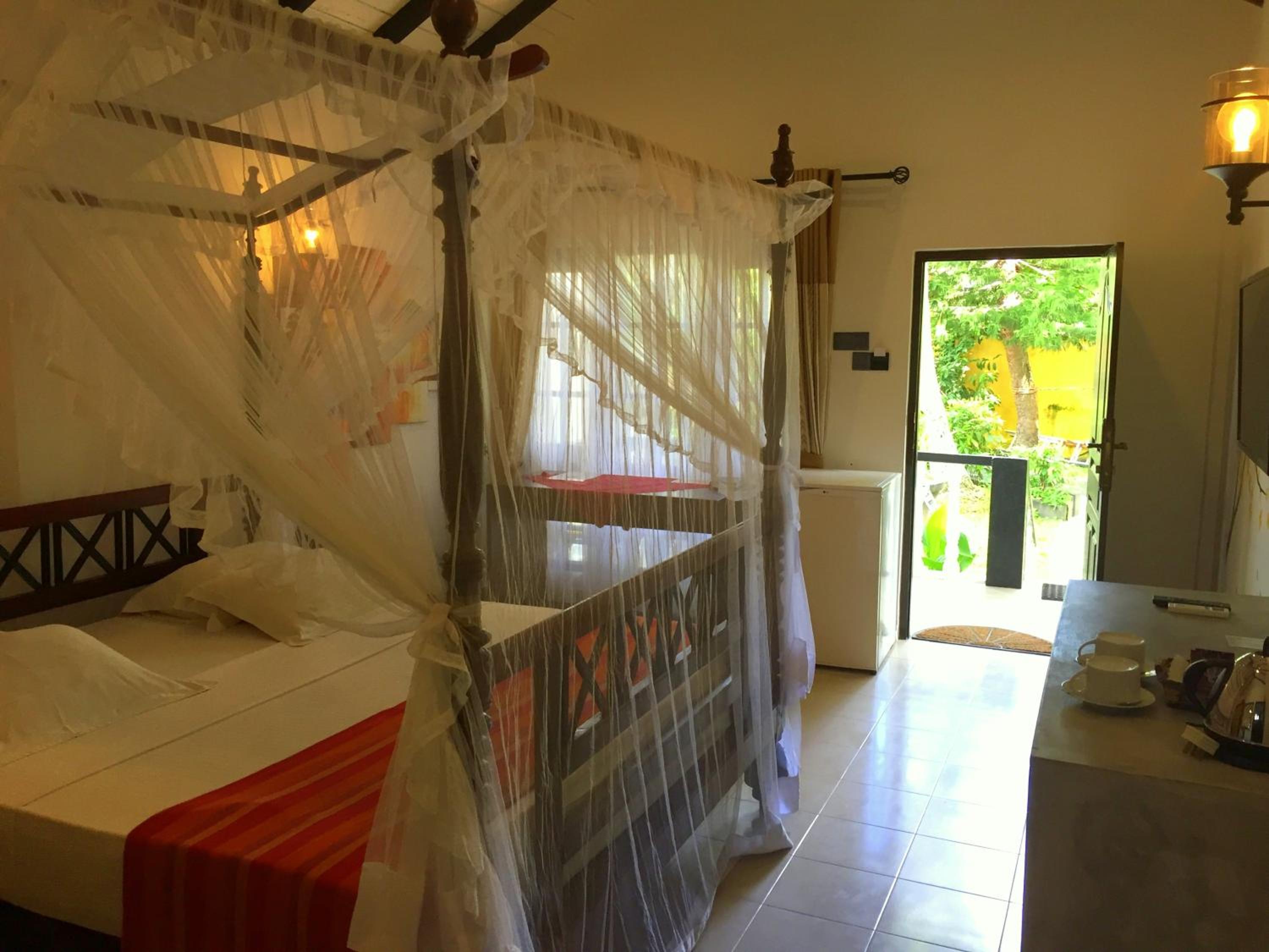 У нас был отдельный чудный маленький домик, где кровать с пологом, огромная ванная комната, маленький холодильник, рабочий стол. Правда кондиционер шумел как бешеный, надеюсь не во всех номерах так 🫣