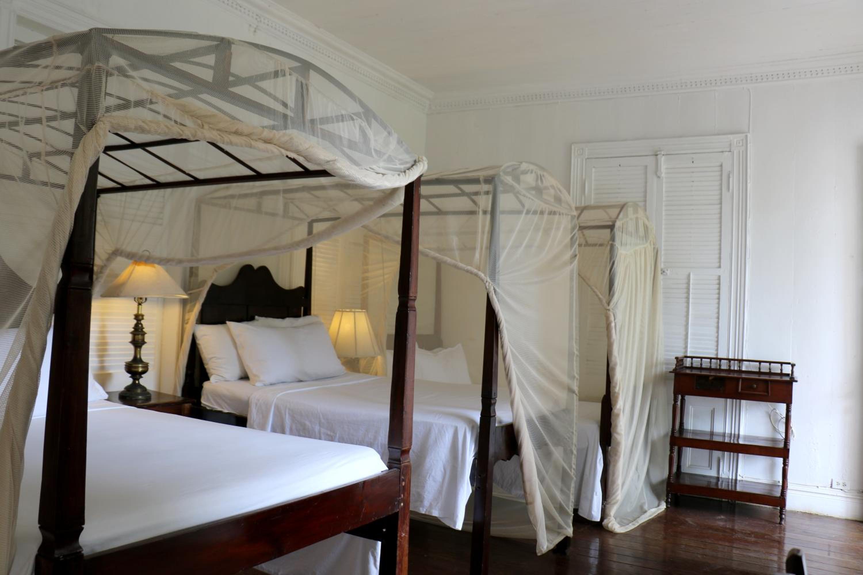 Experience the charm of plantation style rooms at Hotel Florita, featuring wooden furniture, canopy beds, and private balconies, providing a cozy and comfortable retreat during your stay.