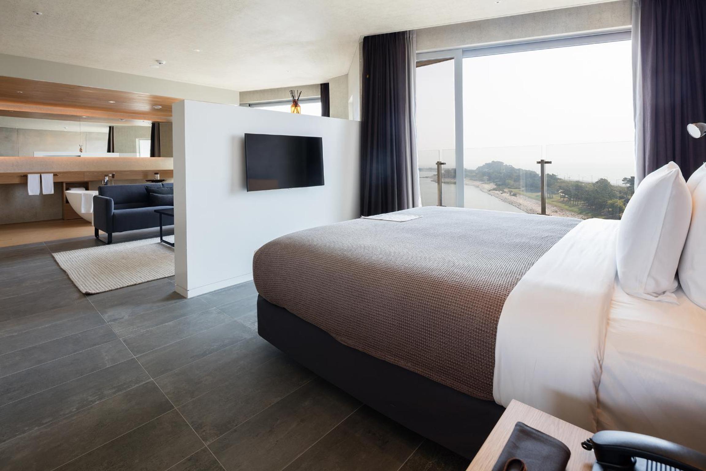 酒店距仁川机场T2航站楼大约20分钟的车程,有酒店的接驳车接送。工作人员非常友好热情,房间舒适温馨,公共泡池和桑拿非常舒服,早餐美味可口。如果不是赶行程,我会好好的住下来,享受这美好的时光。