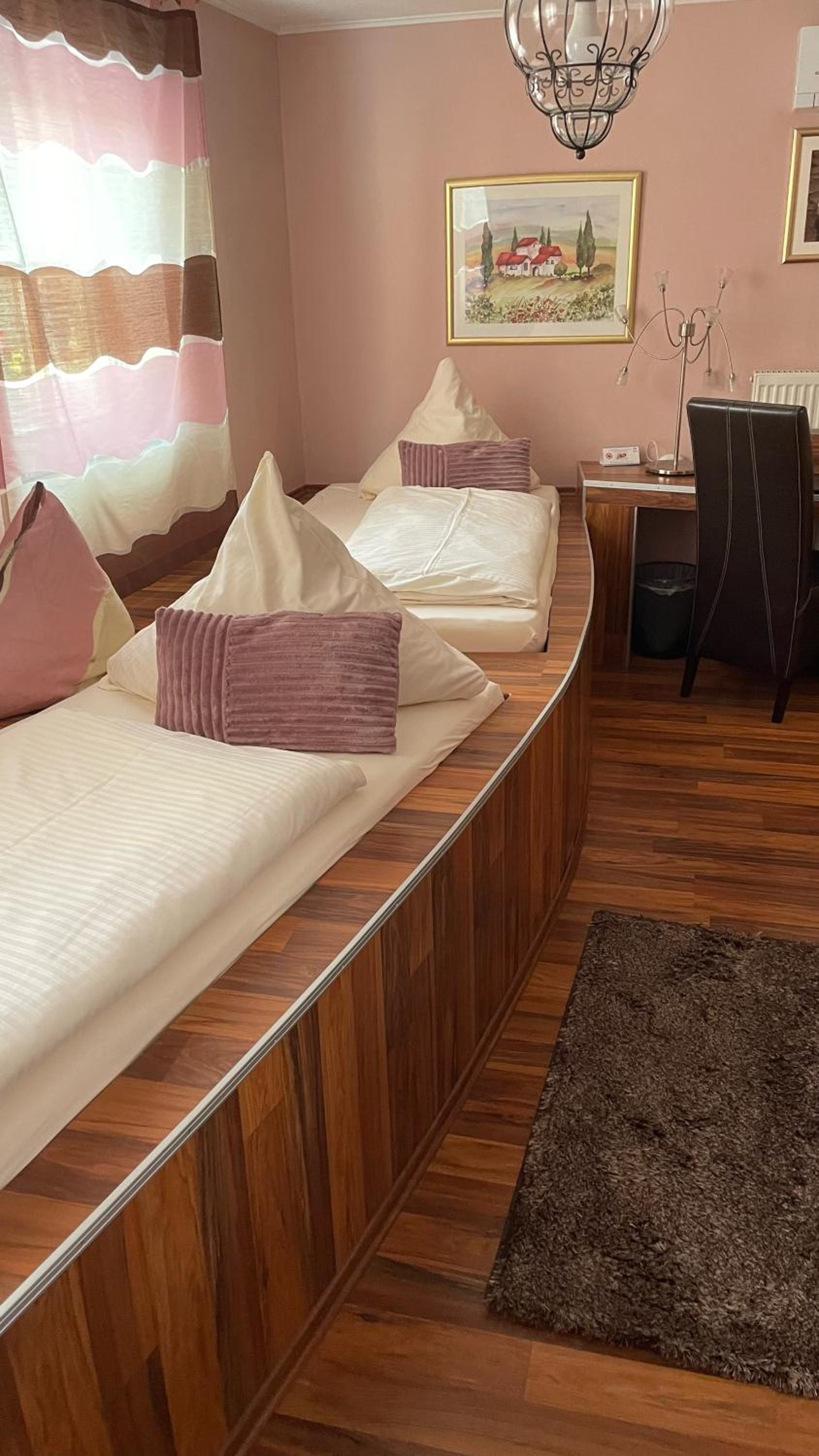 Nette vriendelijke ontvangst. Goede Duitse eenvoudige keuken en een prima ontbijt. Op 20 minuten van de beurs.