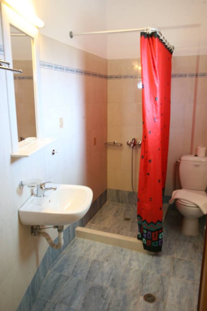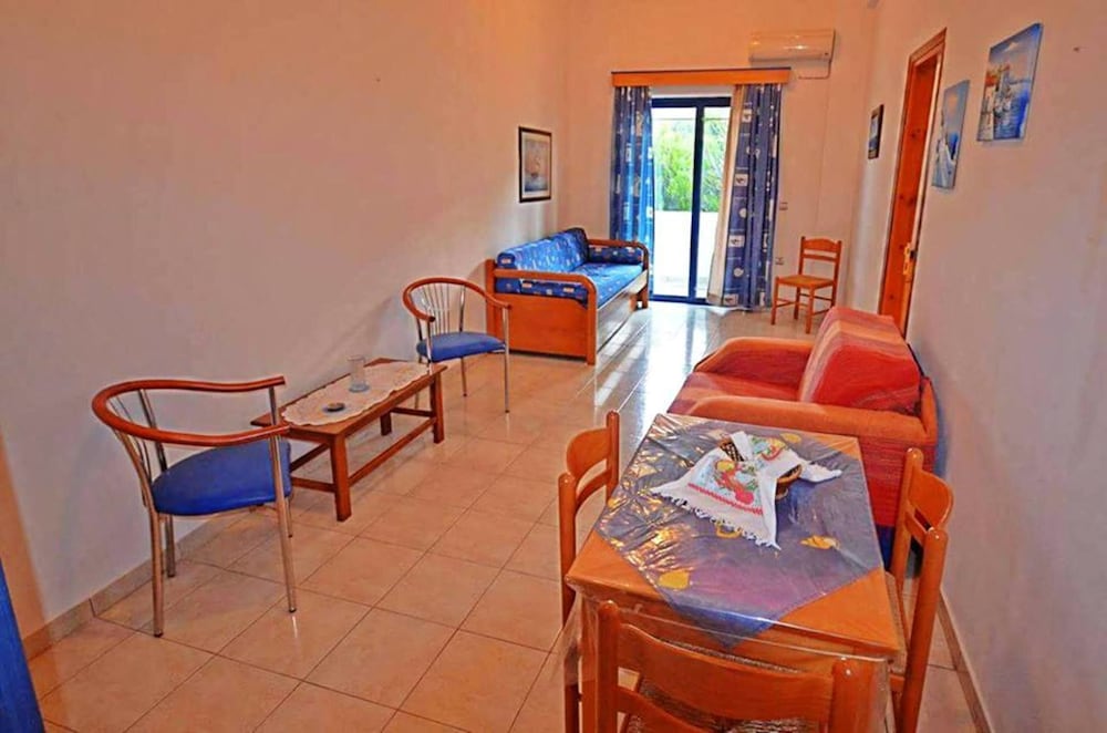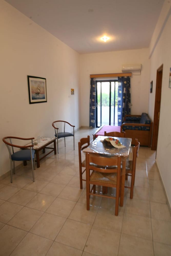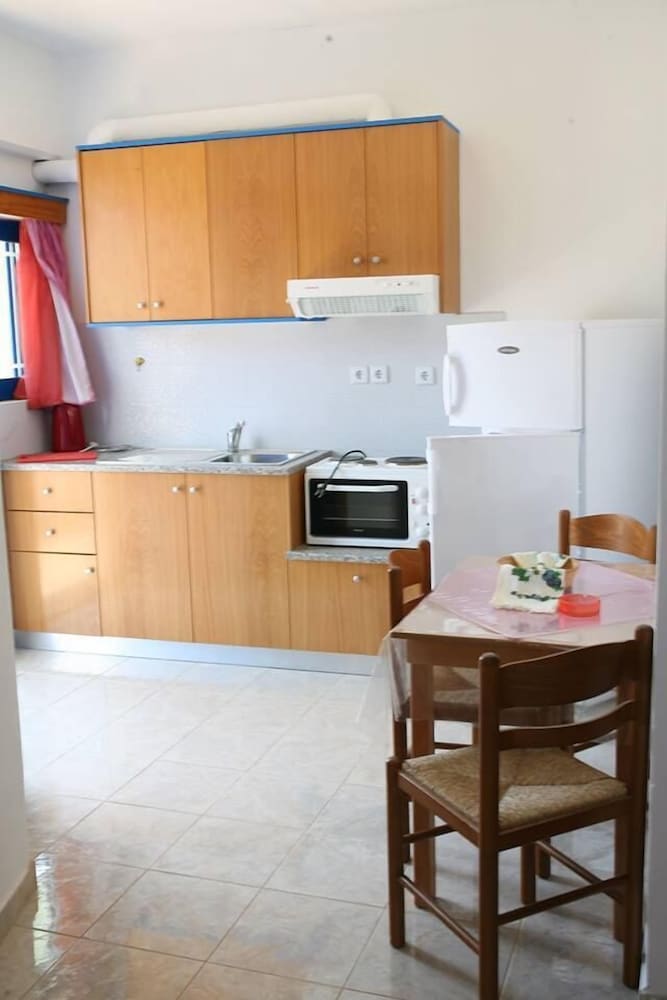 Very nice apartments, very clean, kitchen is good and ok equipped. Very good pan for frying and a big knife for watermelon etc. the restaurant is also nice. The apartment is super quiet and has everything you need, just five minutes to the best beach on Tilos. And this is definitely the best choice of the two hotels by that beach. There is another one but that one is quit run down… so we absolutely recommend staying here, the people are friendly and the area is absolutely beautiful.