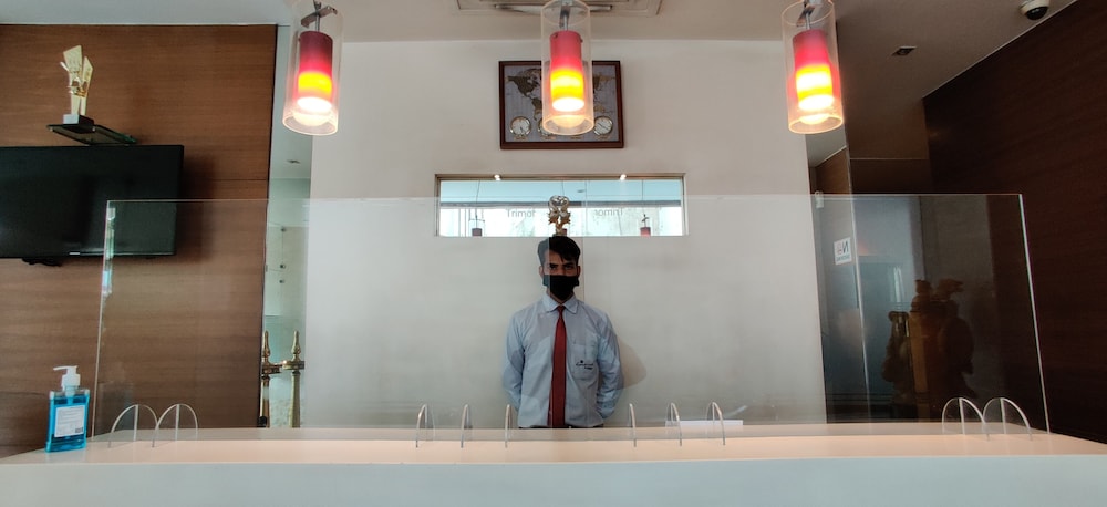 Shield between guests and staff in main contact areas