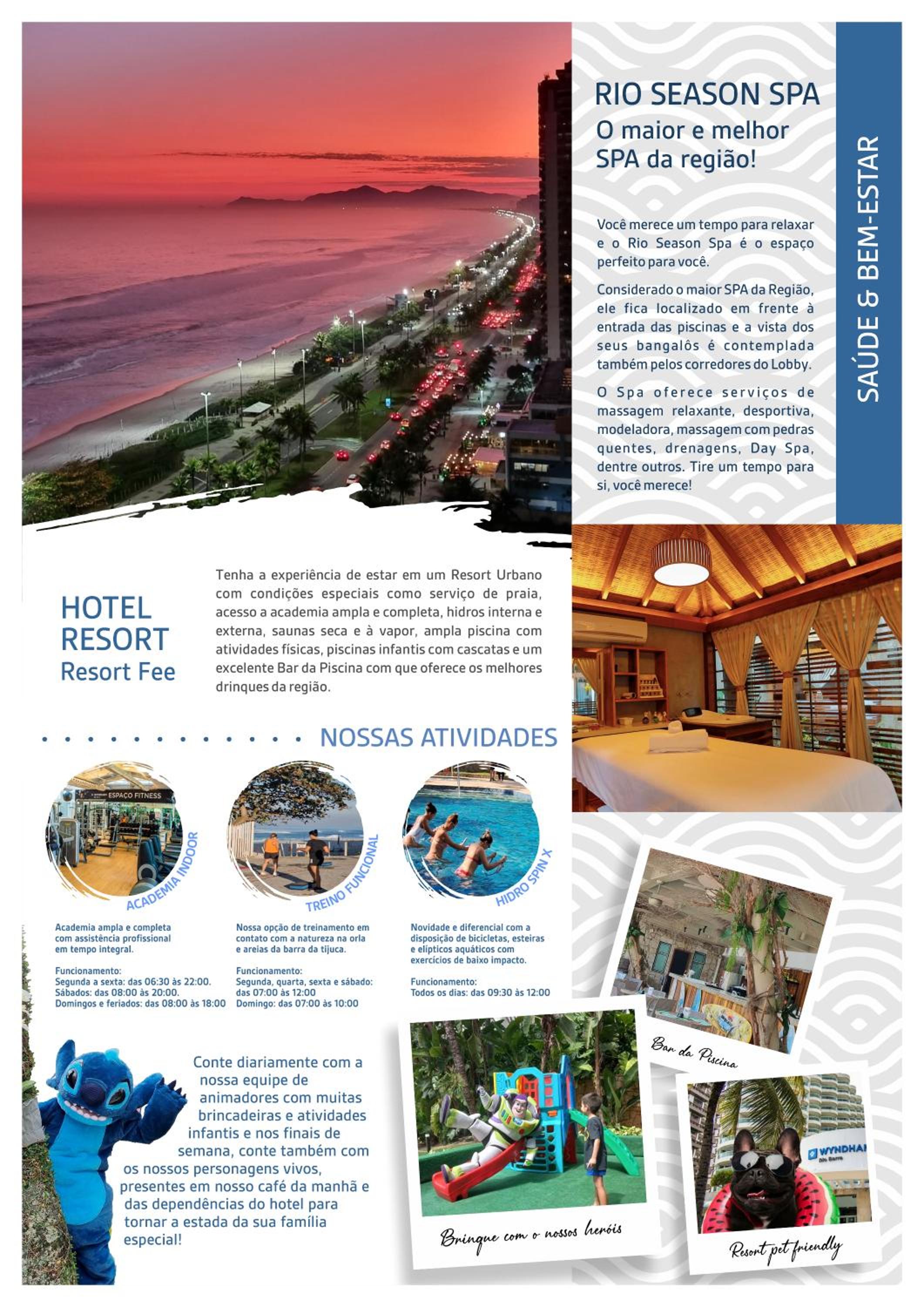 Satisfy your taste buds with flavorful Brazilian cuisine at the on-site restaurant, or opt for a healthier choice at La Fruteria. Unwind with hydrogymnastics, spa treatments, or a visit to the beauty salon. Families will appreciate the dedicated kids' area with exciting recreational activities.