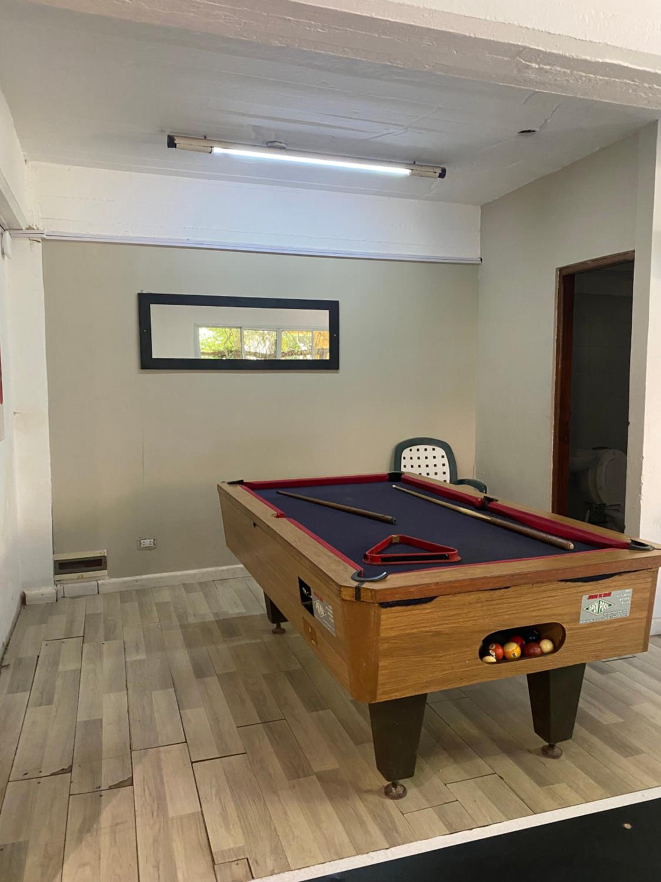 Pool : mala ubicación y estado de la mesa palos triángulo y bochas dañadas.