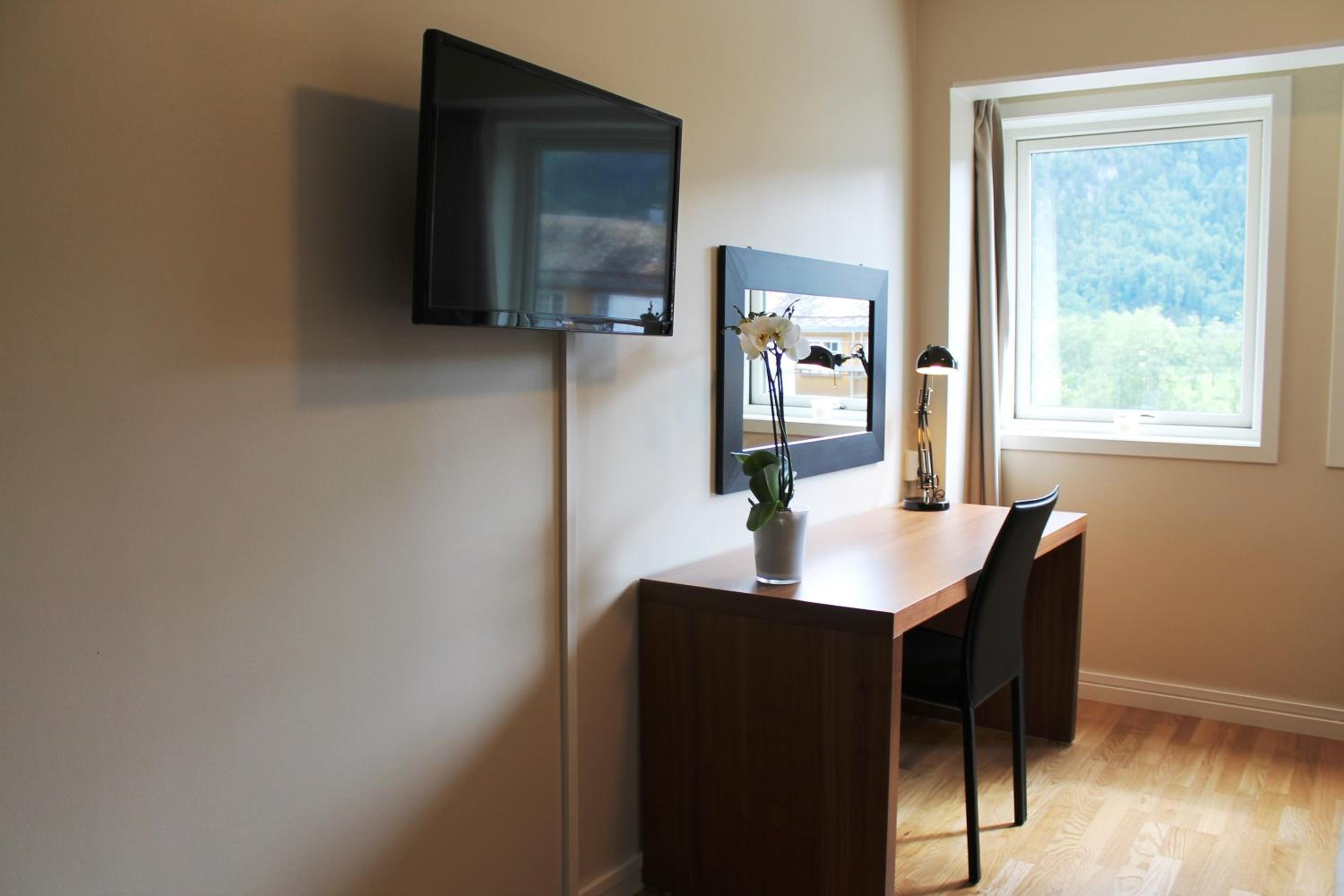 The rooms at Støren Hotel feature private bathrooms, work desks, and TVs for a comfortable stay.