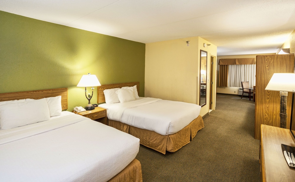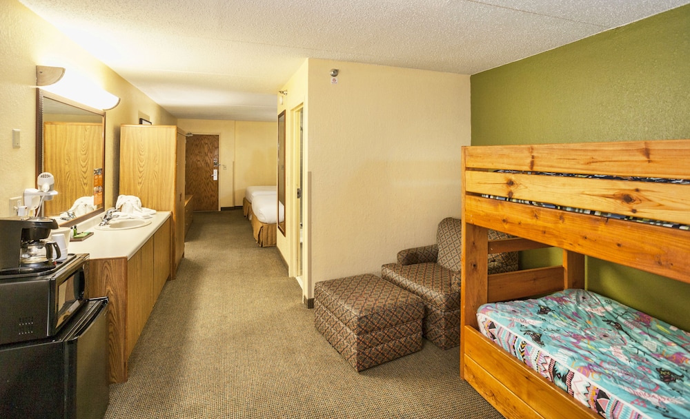 Waterpark was fun. However, only working hot tub was inside the waterpark, which required an extra $ 20 per person to enter. Definitely not the relaxing time we were anticipating. But did partake in the slides since we were already in there. No coffee in the rooms making you pay $5/cup for coffee at their coffee bar which was only staffed in the early morning and not all day. Room was not particulary clean with dust webs hanging off the ceiling. Refrigerator had 3 in' of ice buildup in it and froze all our carbonated beverages. All plugs-ins were loose and would not hold anything plugged in securely. UPDATES NEEDED!! Bathroom door looked like it came from a junk yard. Pieces of wood missing from the door. Mirrors were smeared and looked like a kid washed them. Beds and pillows were as uncomfortable as they come. I could go on, but I think you get the idea.