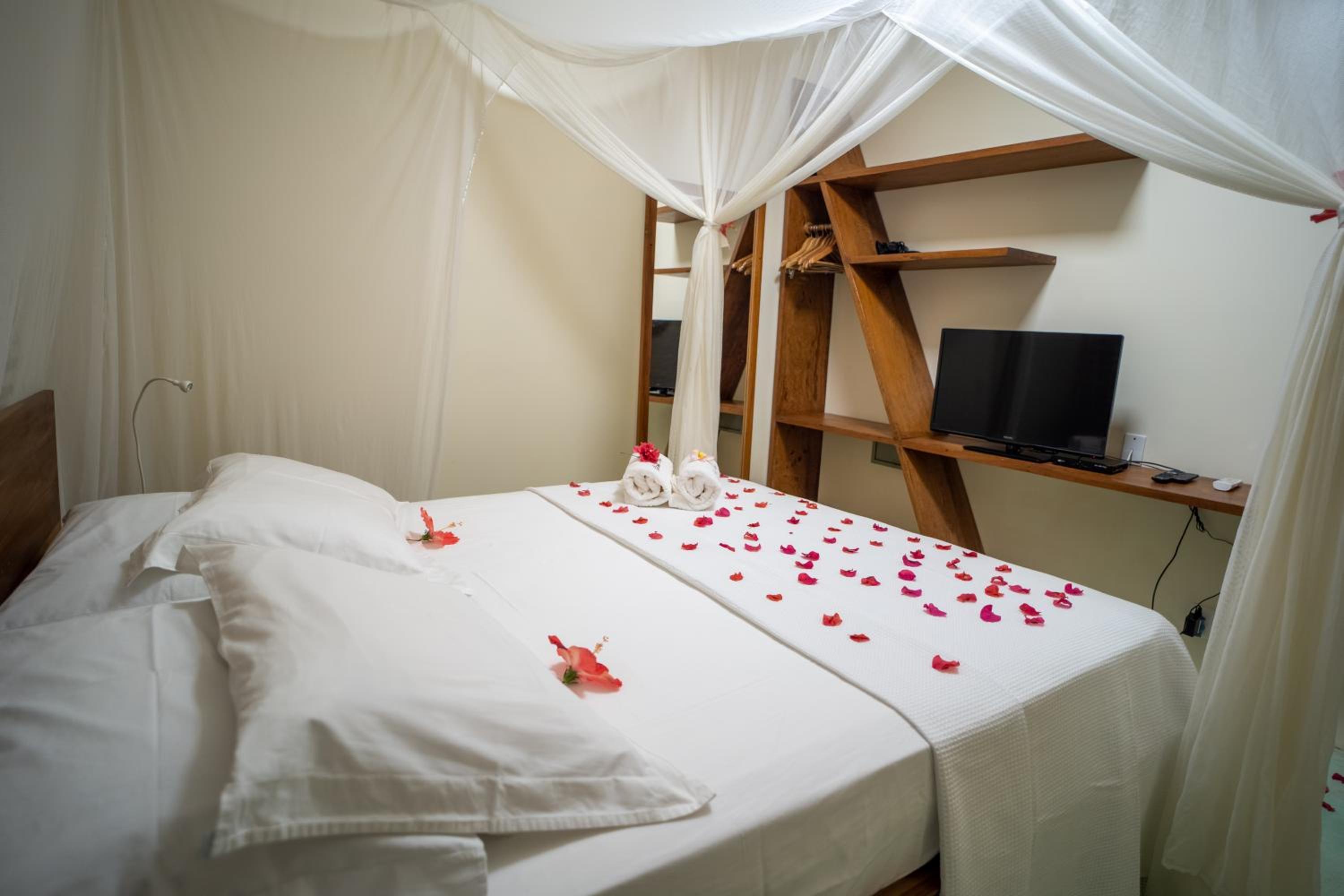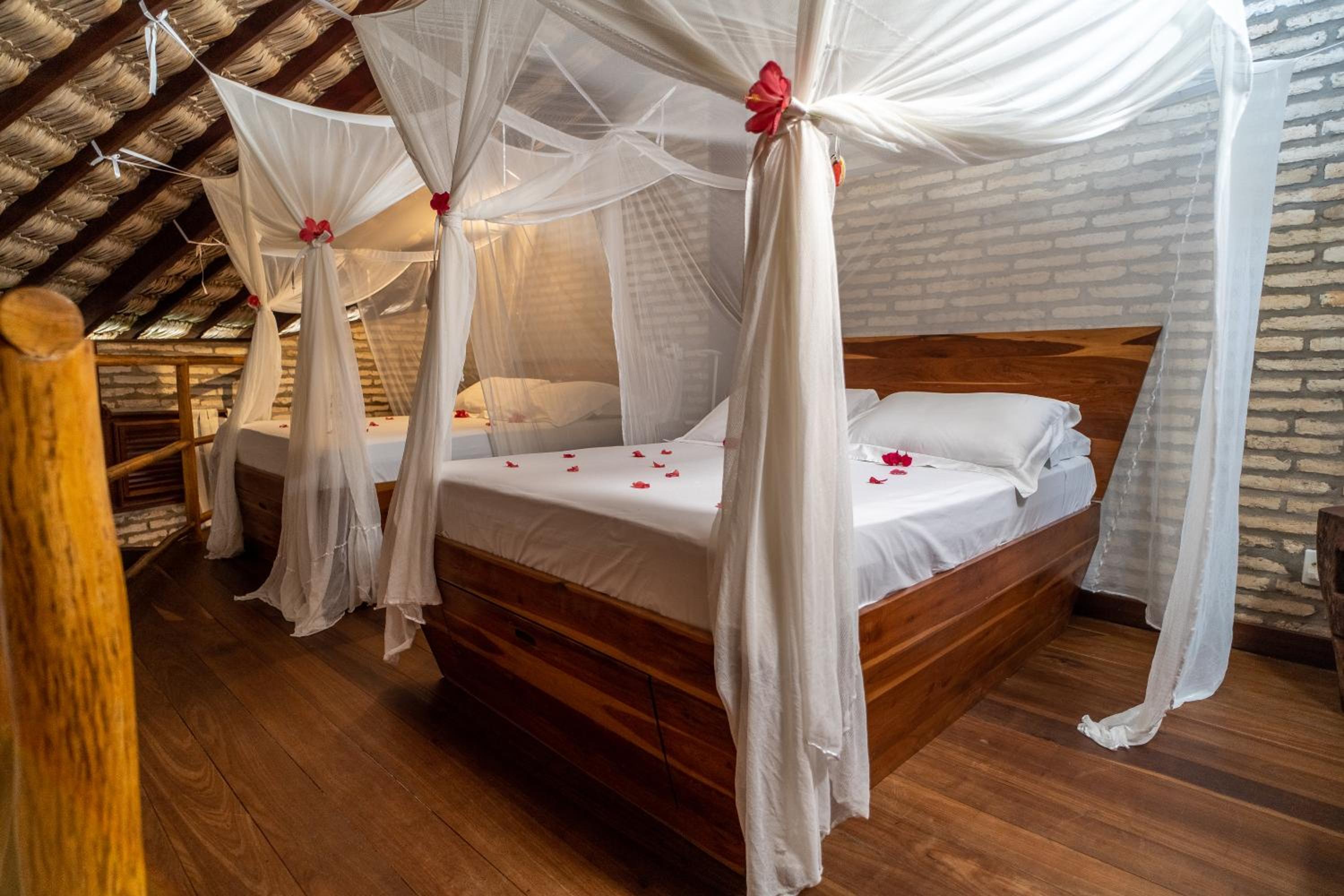 Well-Appointed Rooms and Personalized Service: Each modern room at Casa Fufi features a balcony with hammocks, a safe, refrigerator, and more. Indulge in a welcome drink, daily fresh coconut water, and personalized assistance for booking activities.