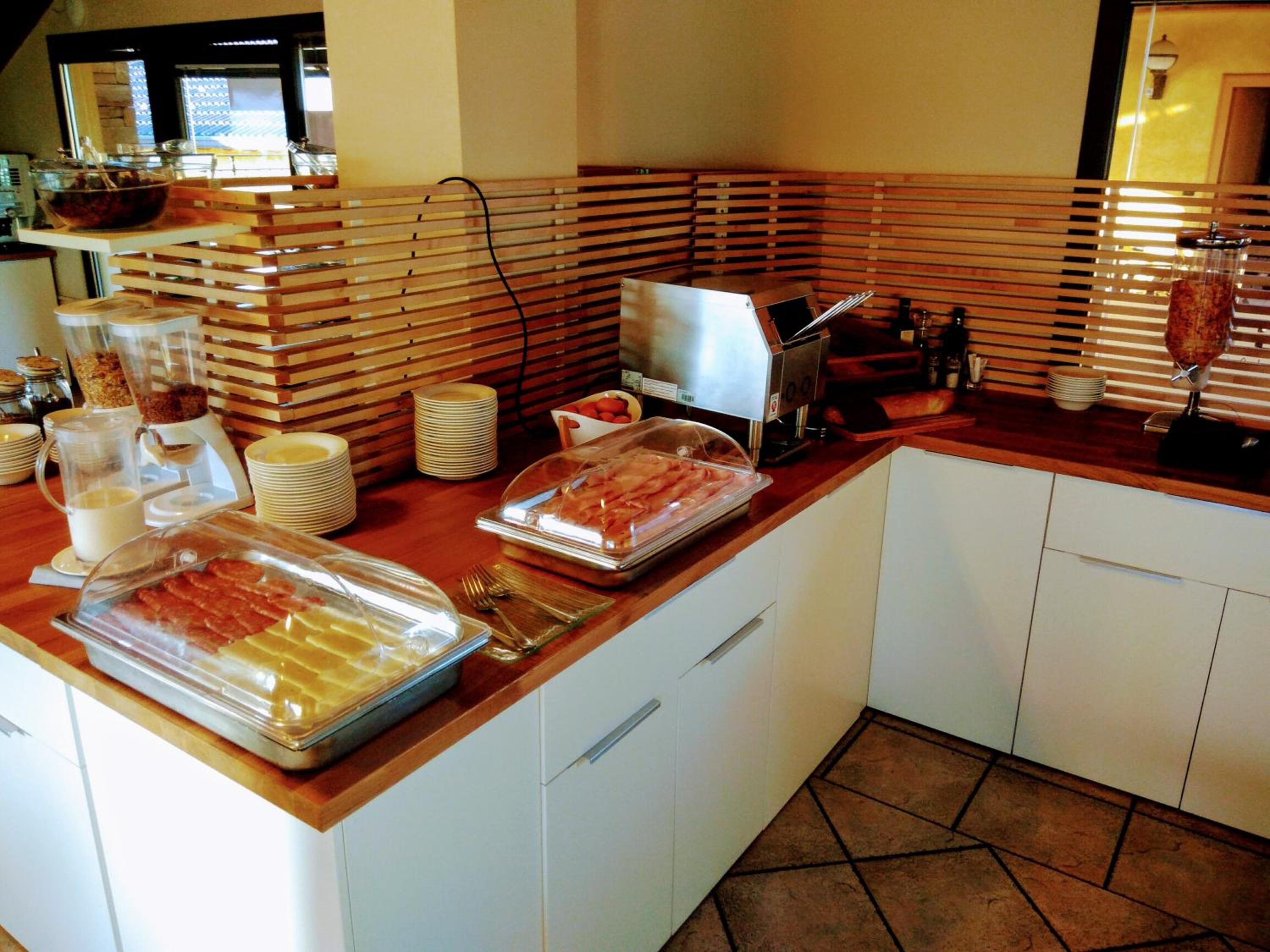colazione varia e con prodotti freschi e possibilità di parcheggiare all'interno della struttura e la presenza di ristorante nell'hotel di buona qualitàà