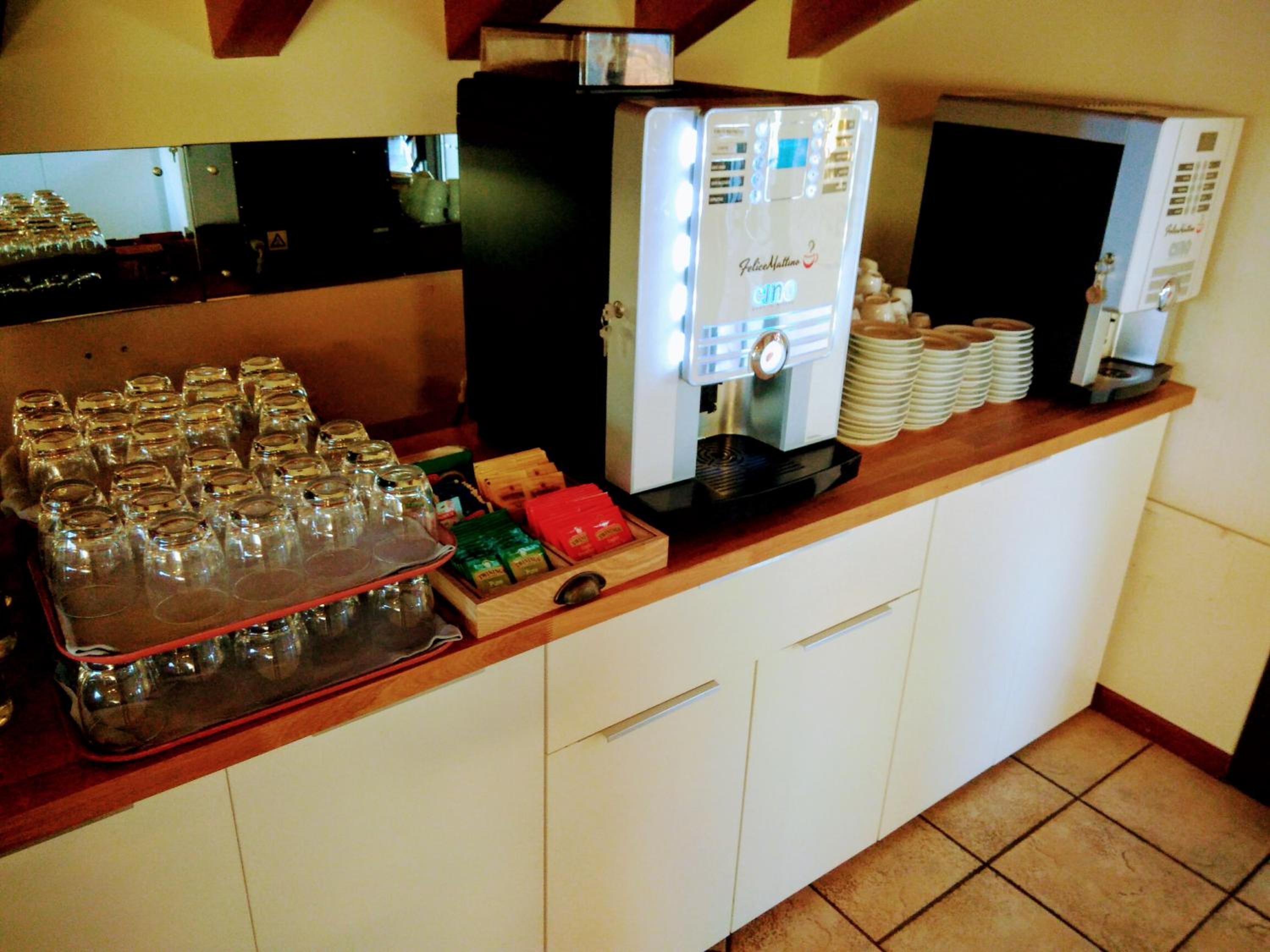 Sala colazione luminosa e completa di tutto.