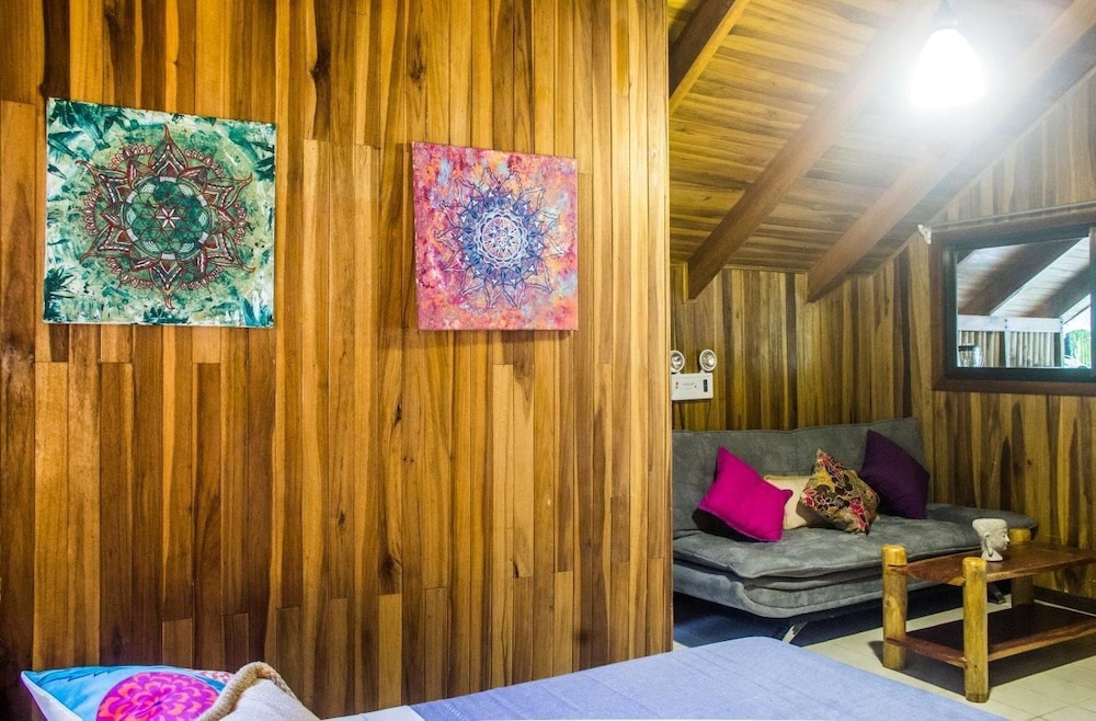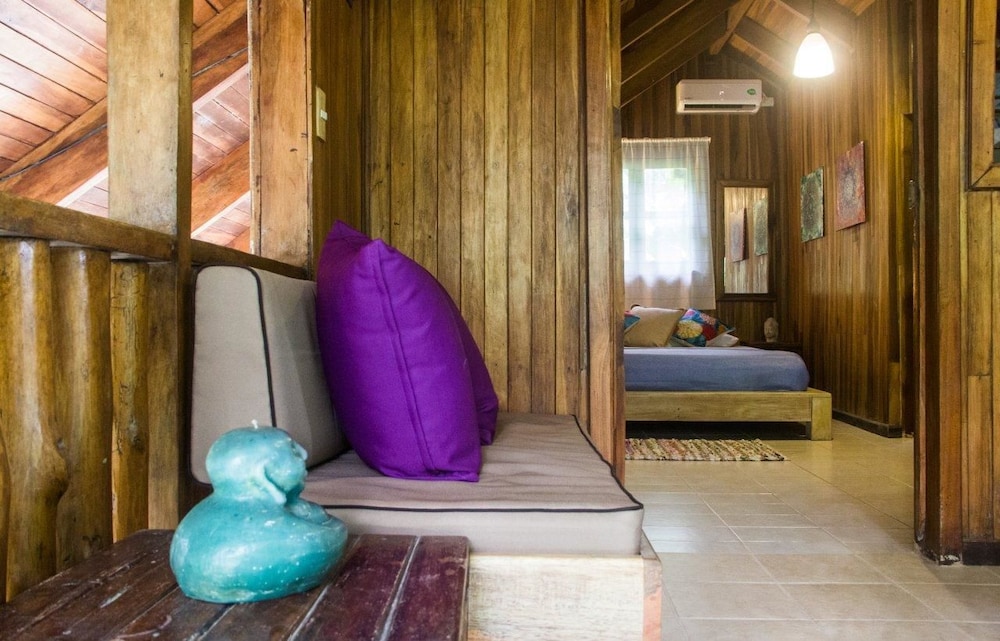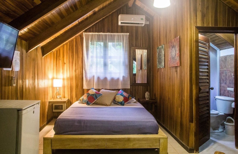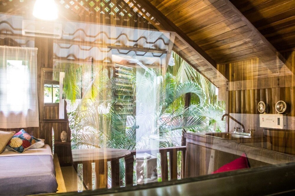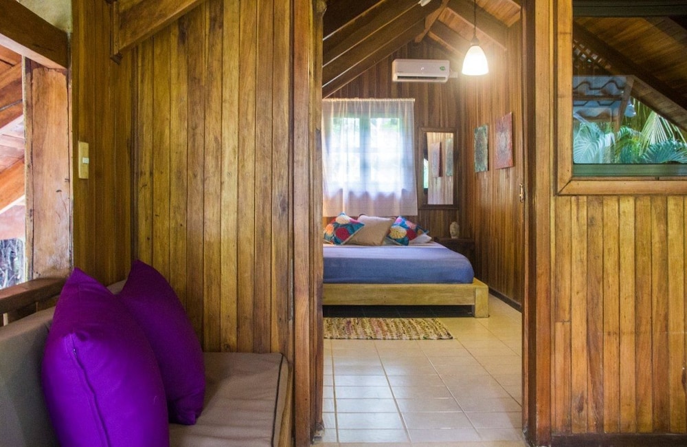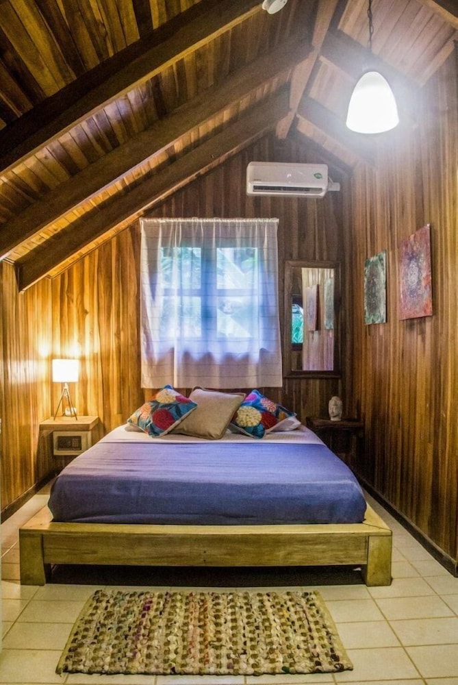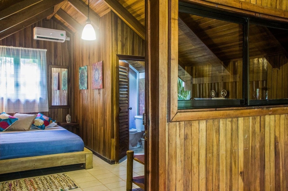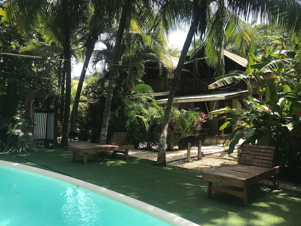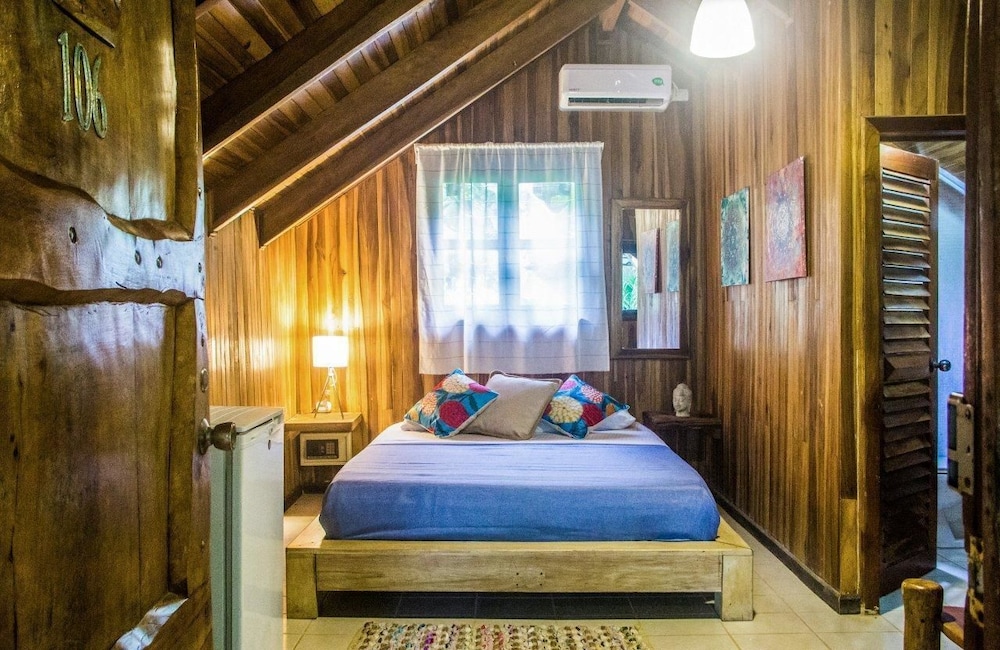 The beach and pool are great here but this is not Costa Rica.If you are looking for a peaceful, calm surrounded by wildflie vacation your are looking at the wrong place. I did not come here to hear ATV, motorcylces and traffic everytime I went to our cabin.It was very loud and disruptive. We had room #7 and could hear every footstep from the people on top of us as well. A/C worked well. The set-up has great potential but the room locations right by the road are horrendous. It would be so much better if it was closer to the beaches. We actually had to ask for our money back and skip out a day earlier because we did not like this town or location. This is a surfing, hippie town that's overpriced and has chased out all of the locals. There are no Costa Ricans left here and the town has been wrecked in our opinion. There were no fruit stands or locals selling anything just some people selling overpriced wilted fruits and vegetables that people were going crazy for. Beaches are great for surfing and the views are amazing but the town and room location ruin it.