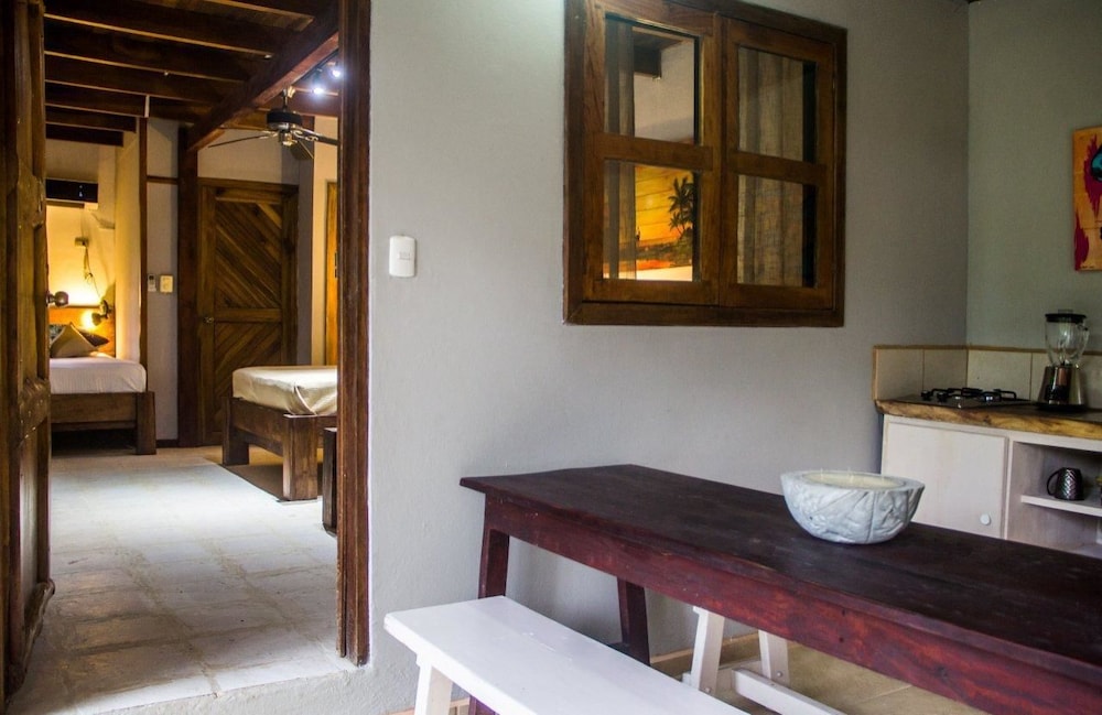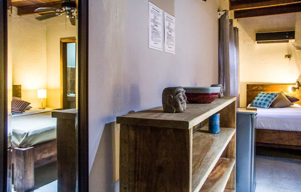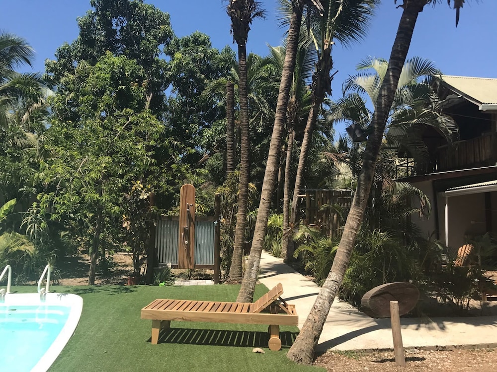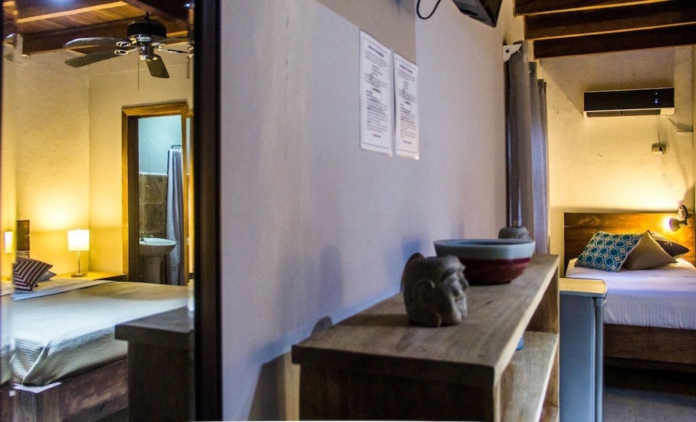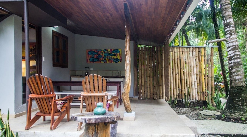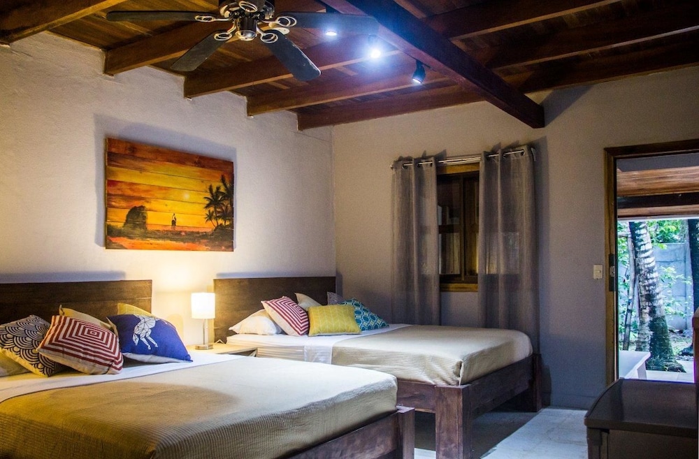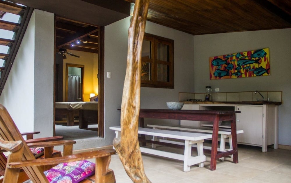 Right by the beach, the beachfront restaurant and walking distance to the grocery store and banks. We were looking for a place that was original and felt like Santa Teresa and this was it. Pia and Amanda were very helpful; helped us to organize surf lessons, atv rental, directions to Playa Hermosa and Montezuma as well as a helping us book a flight to San Jose as well as a car rental to go to Tamarindo! You could tell that they just wanted you to have a good time and would support you to make that happen even when they weren't directly benefiting..... that's true help! It was a completely relaxed and cool vibe!