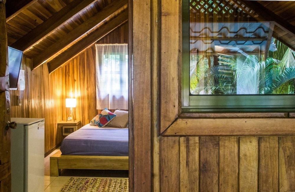 Nous sommes restés 3 nuits à Santas Cabinas. dans un haut de duplex (Le Mona No. 104). Il y a un joli balcon et beaucoup de végétation, une grande piscine et l'accès à une plage ( rocheuse) est à 60 mètres. L'intérieur est petit et sombre.En plein jour une lampe de poche nous était nécessaire pour trouver un vêtement dans nos valises.Par contre le lit était confortable et la clim.fonctionnait bien . Comme le duplex est à 5 mètres de la route c'est très bruyant.On a dû payer cash dès notre arrivée et avons dû réclamer un reçu au départ.Réservé du Canada (via Expédia) la jeune Pia, qui gère la section Santas Cabinas avait annulée notre réservation de son propre chef . Nous n'avions pas lu son mail écrit 2 jours avant notre départ pour le Costa Rica exigeant le dépôt par Paypal seulement .( Une astuce pour éviter de payer la cote-part d'Expédia tout en profitant de visibilité. Nous avons demandé le 2 ième jour de changer de chambre pour un Bungalow plus grand que nous a montré un au des hôtes ( Andrew)Mais Pia à qui nous avions déjà réglé nos trois nuits en argent sonnant nous a dit qu'elle ne nous remettait pas les sommes payées pour le 2 nuits restantes et qu'il fallait payer à nouveau une occupation d'un bungalow ( plus cher) puisque le bungalow appartenait à un autre co-proprio.Nous avions pêché un thon jaune laissé au frigo pour la femme de chambre selon les conseils d'Andrew. Curieusement Andrew se dirigeait vers l'allée du 104 lorsque nous quittions les lieux.