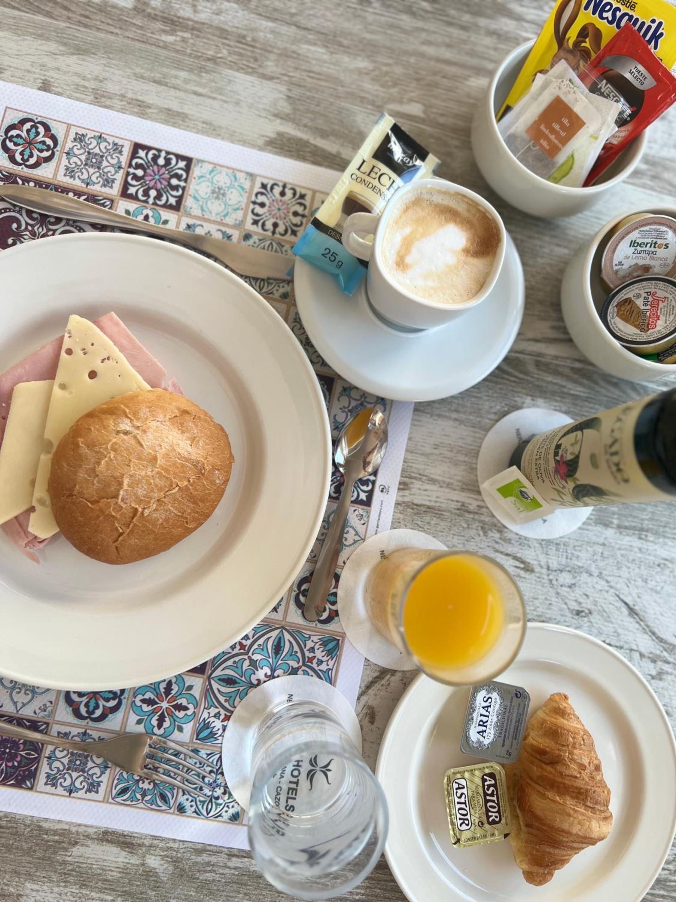 El desayuno bien, poco donde elegir. Para nosotros suficiente. Les falta más variedad.