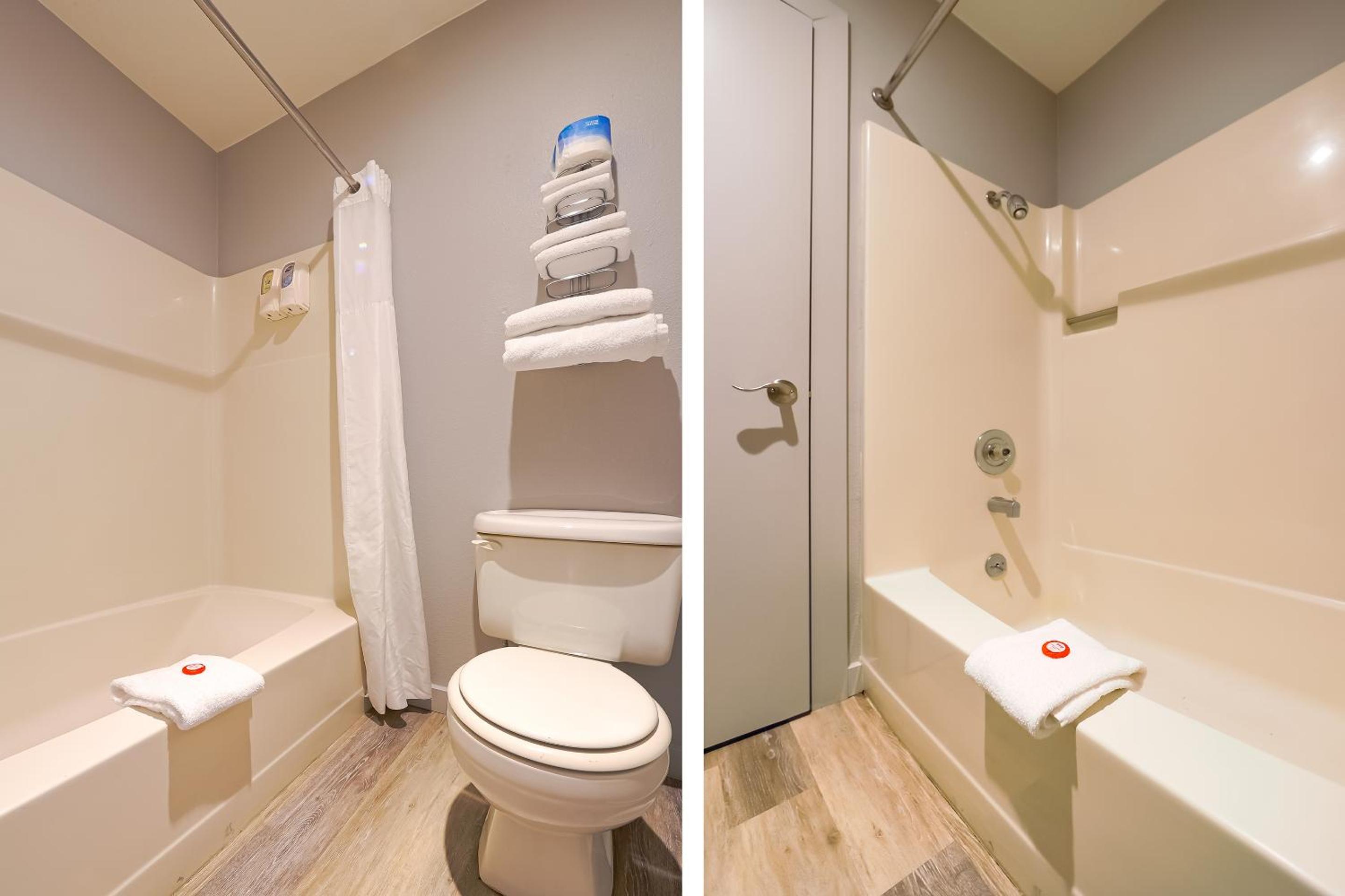When we arrived, there was a man making a ruckus, and the cops had to be called on him multiple times. We were escorted to our room and when she opened the door, it was a room that hadn’t been cleaned, no sheets on the bed. Ick. when we got to the new room it was all right but the bath tube was dirty.