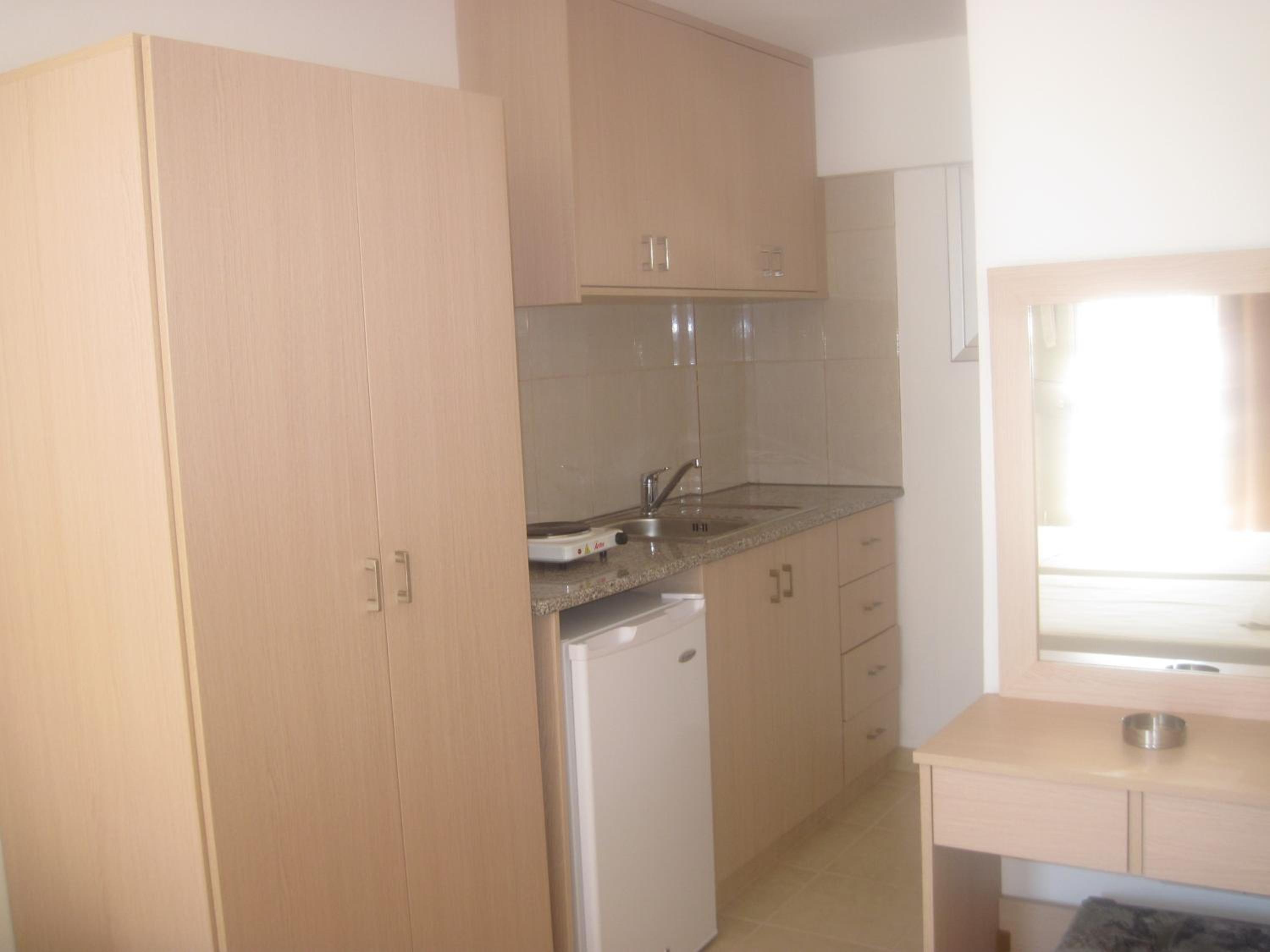 Fully Equipped Units: From kitchenette facilities to air conditioning, our bright units cater to all your needs for a comfortable stay near Limanaki Beach.