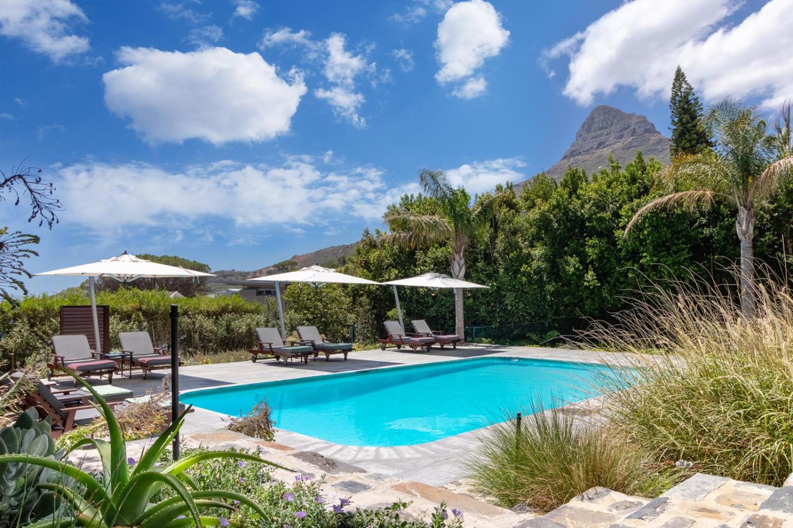 Unwind by our outdoor swimming pool surrounded by sun loungers, offering a tranquil oasis in the heart of Camps Bay. Enjoy free WiFi throughout the property and take advantage of the daily maid service for a truly relaxing stay.