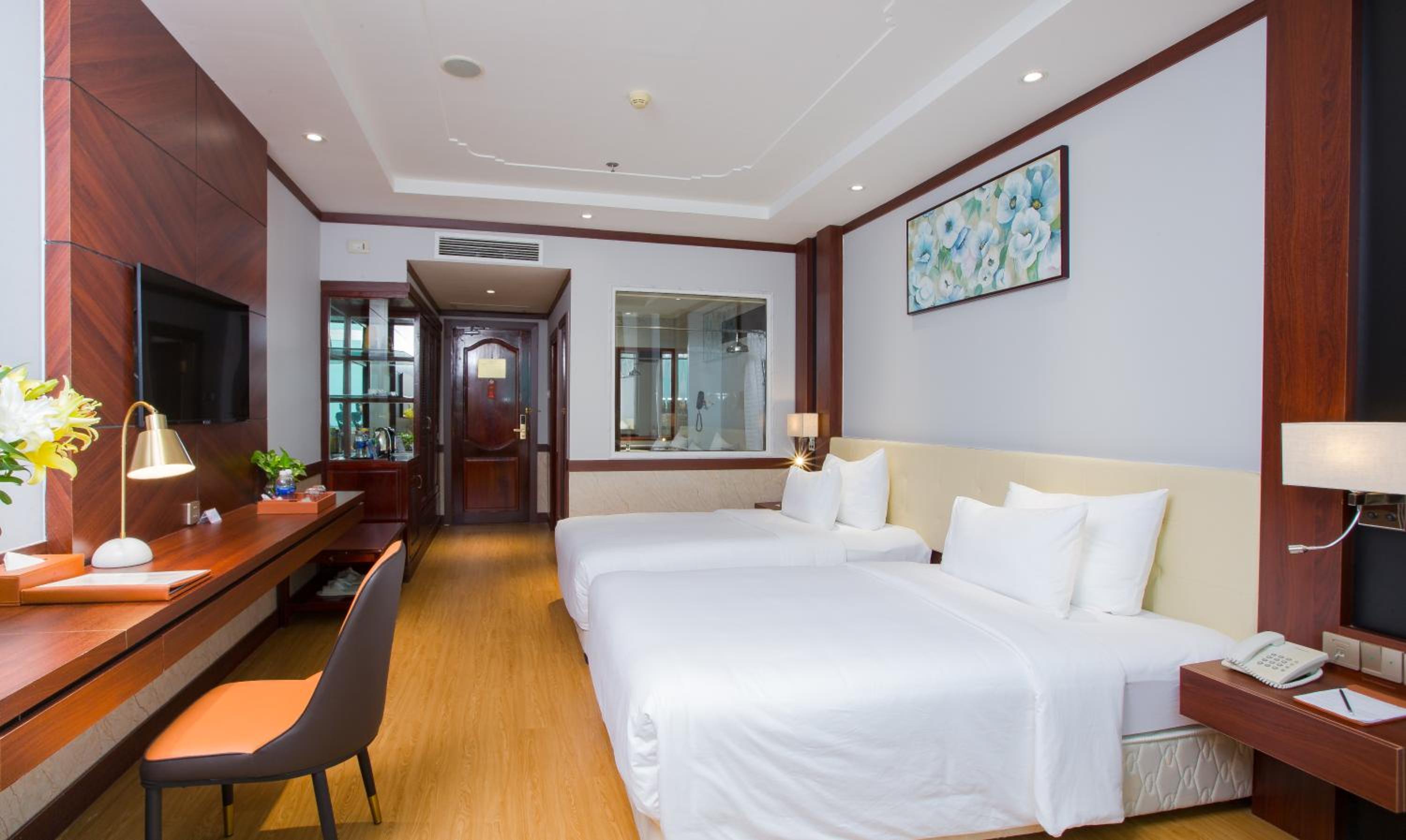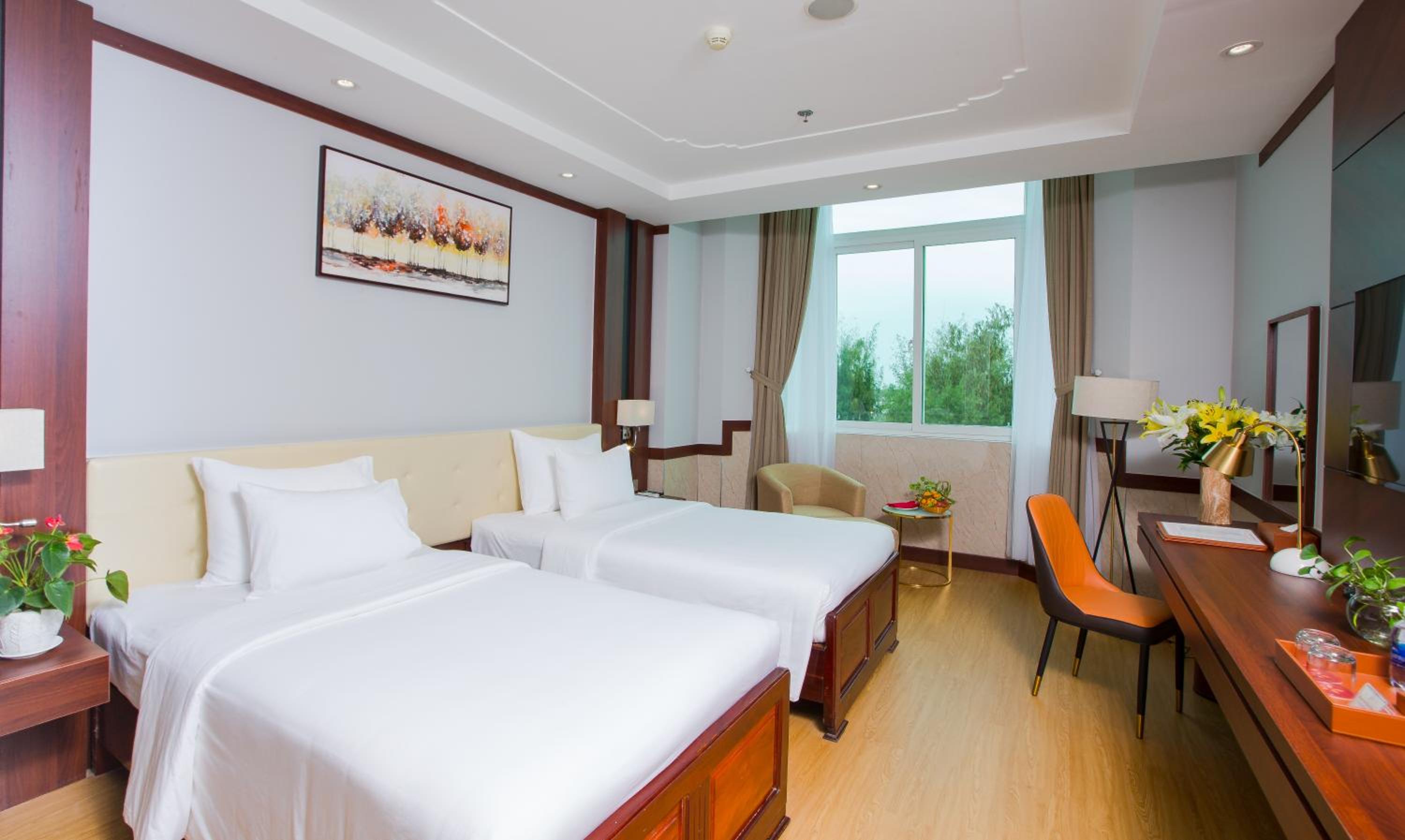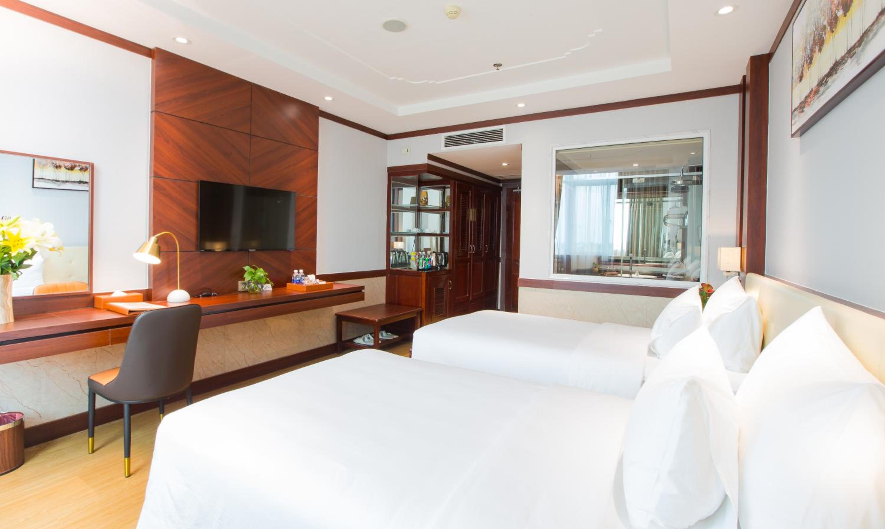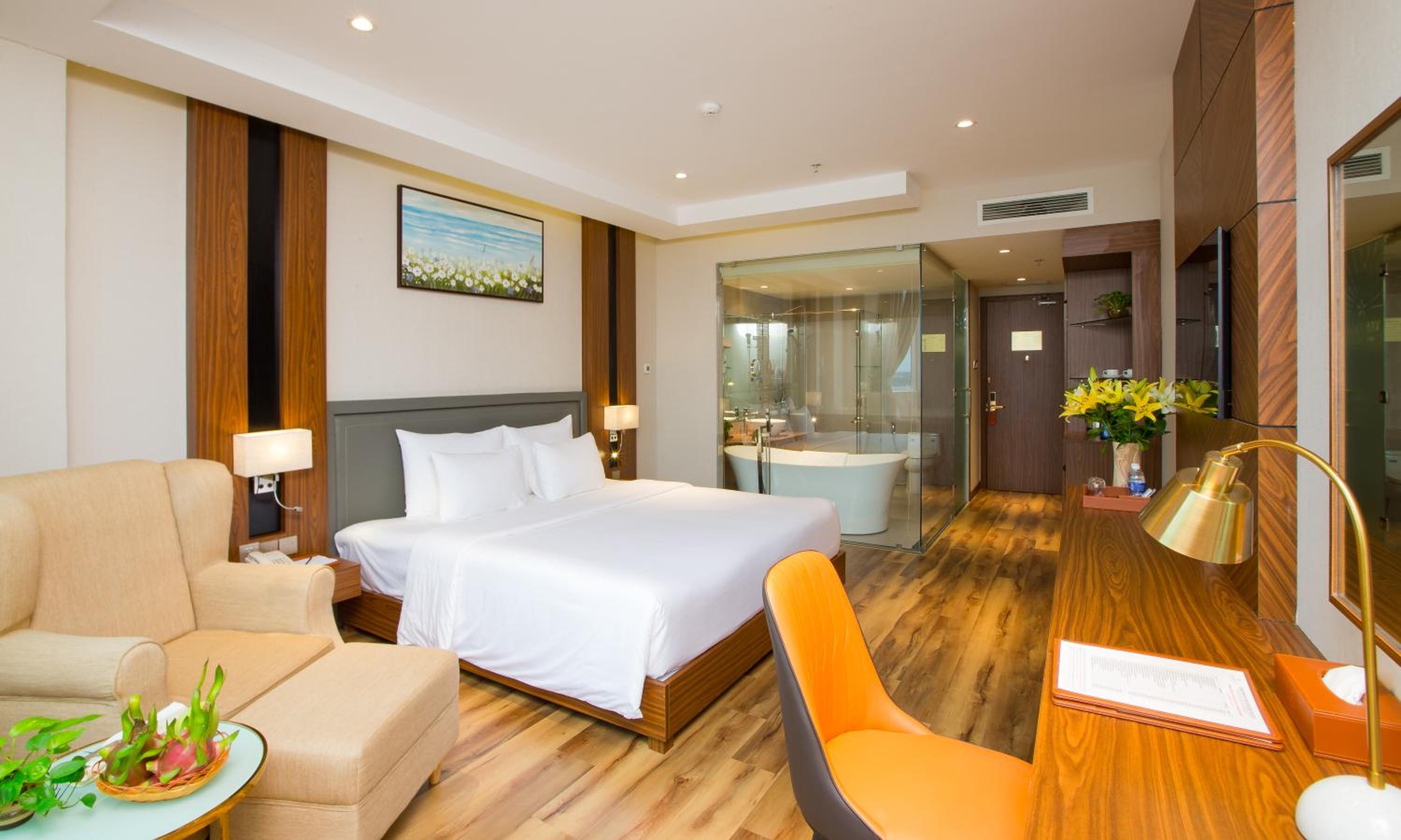 Van Phat Riverside Hotel offers elegant and fully air-conditioned rooms with modern amenities, ensuring a comfortable stay for guests. The en suite bathrooms with bathtub and shower facilities provide a touch of luxury during your visit.