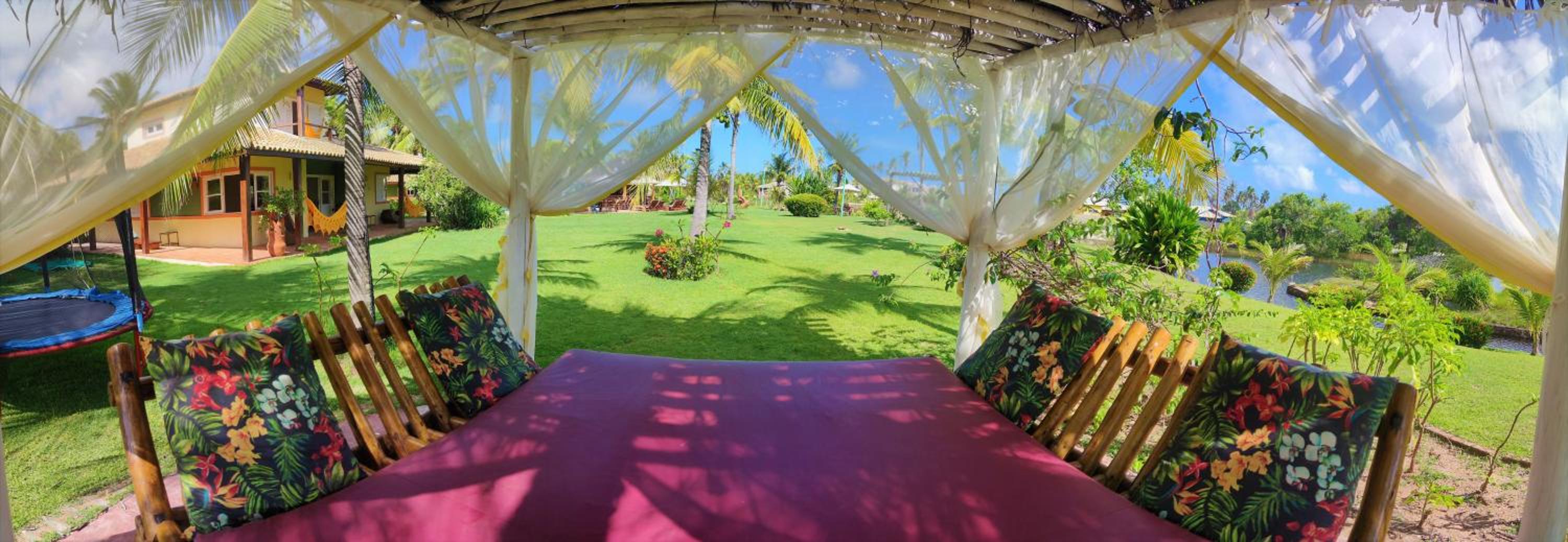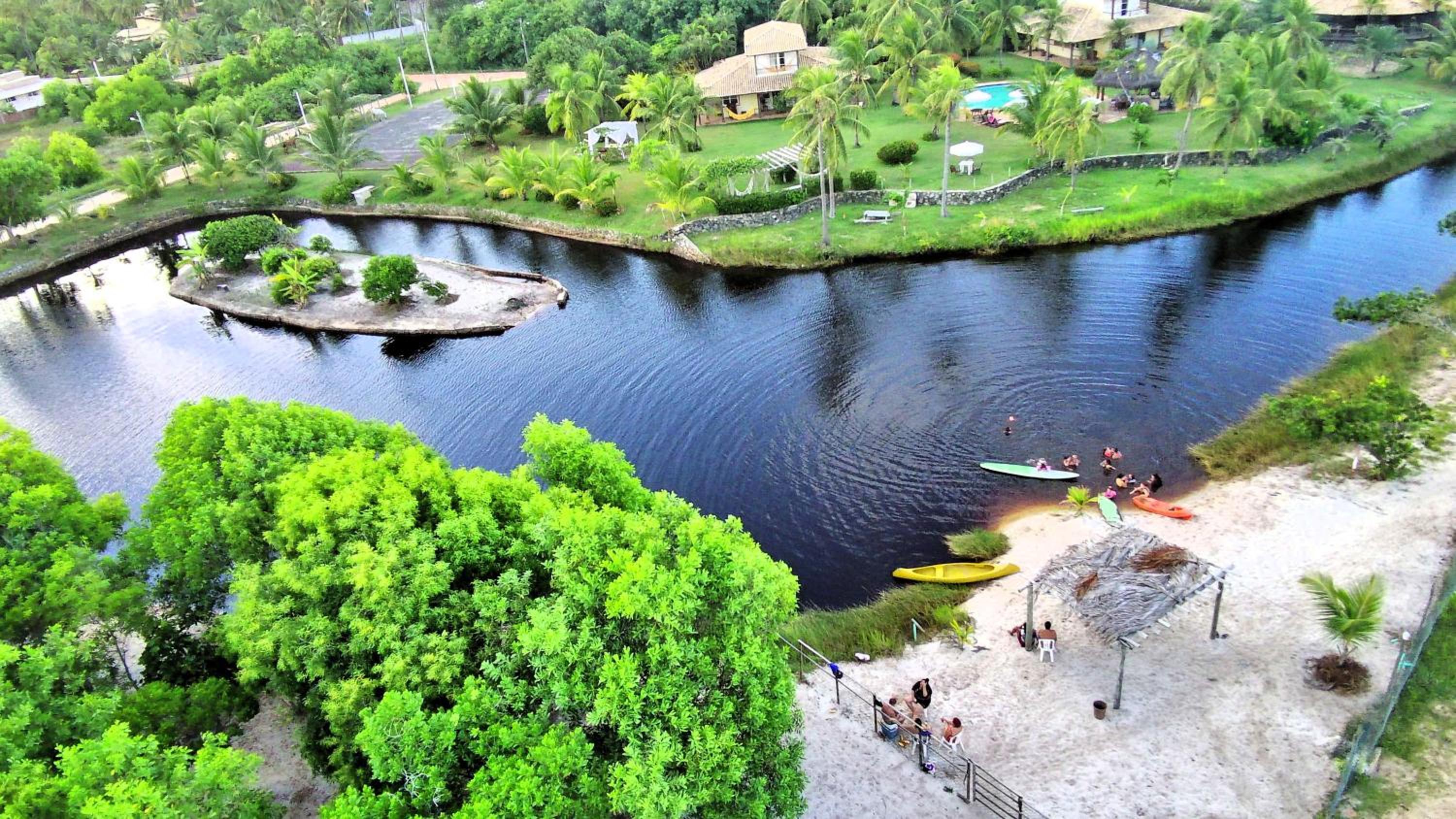Contato com a natureza. Próximo à praia. Tem lagoa com caiaque, piscina, restaurante. Tudo muito lindo!