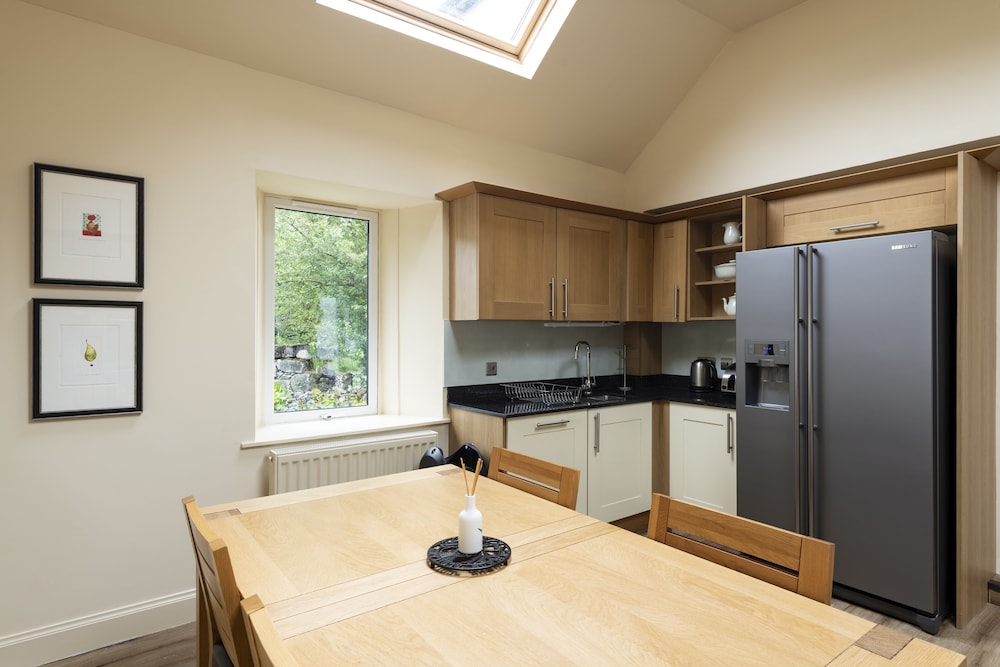 The main building is a beautiful old country house. The food is lovely with a very relaxing atmosphere. The Clarsach being played near the roaring wood fire was really special. Having your own island to explore is a bonus!