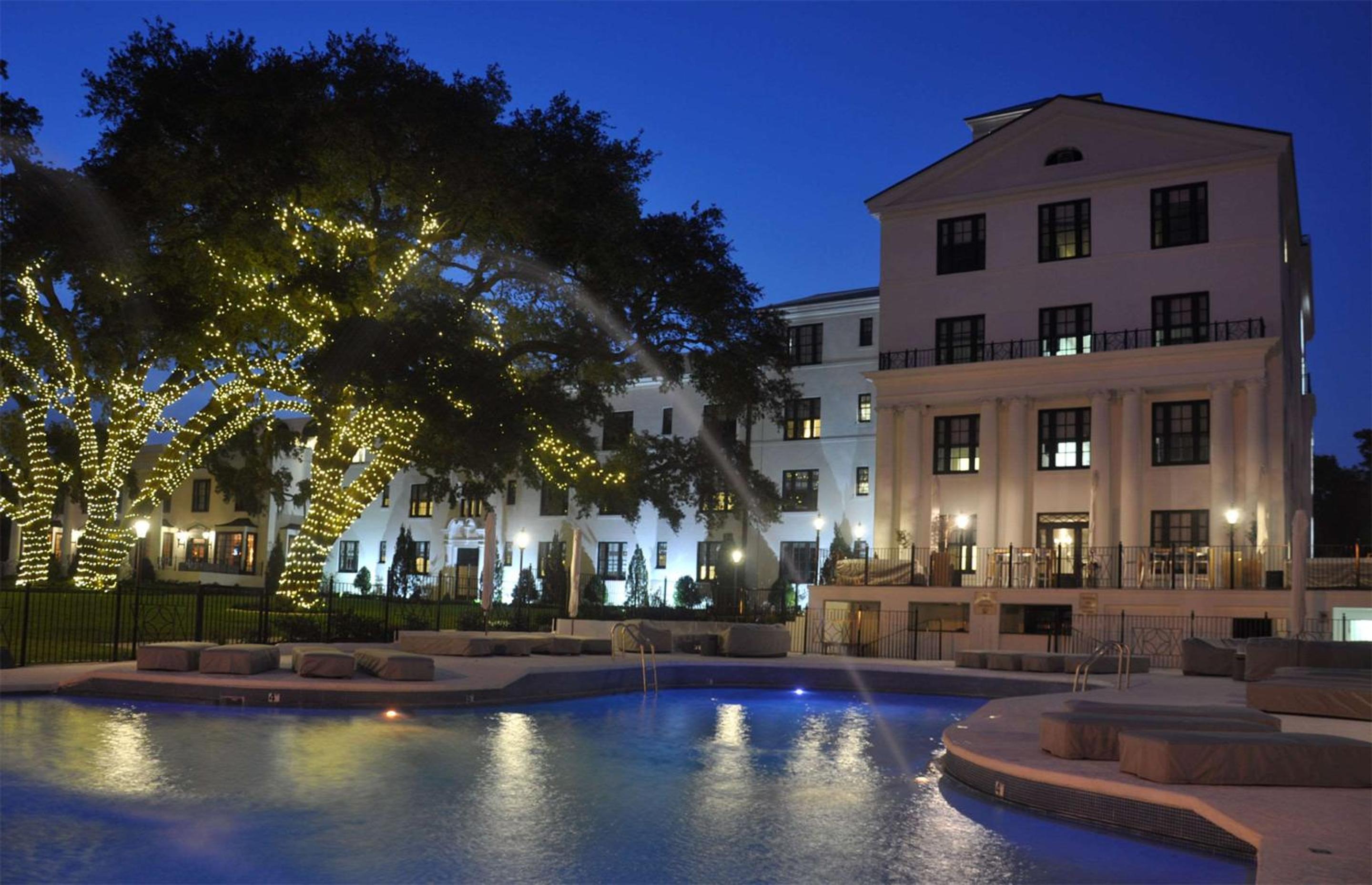 Experience the perfect blend of history and luxury at the White House Hotel in Biloxi. Relax by the outdoor pool nestled among lush trees, or unwind on chic patio furniture.