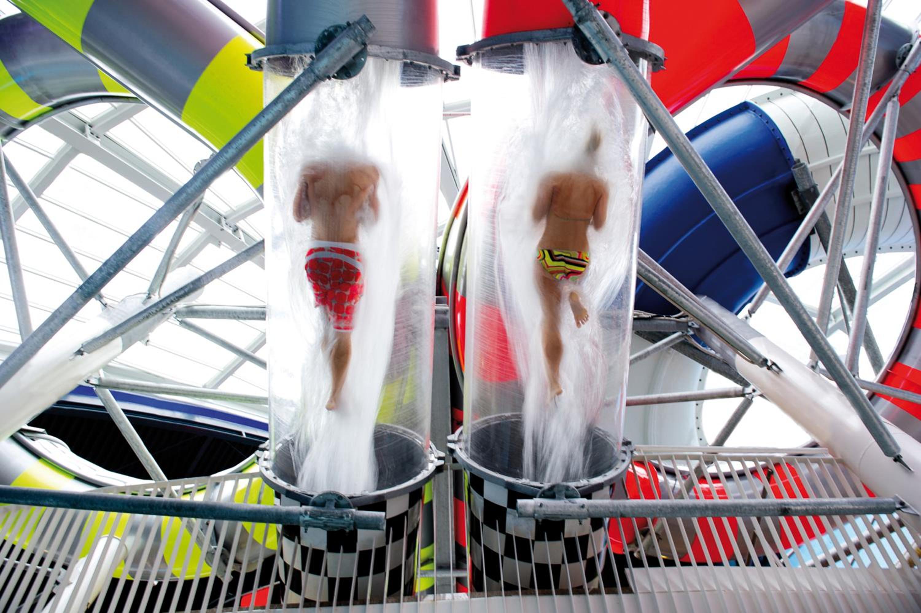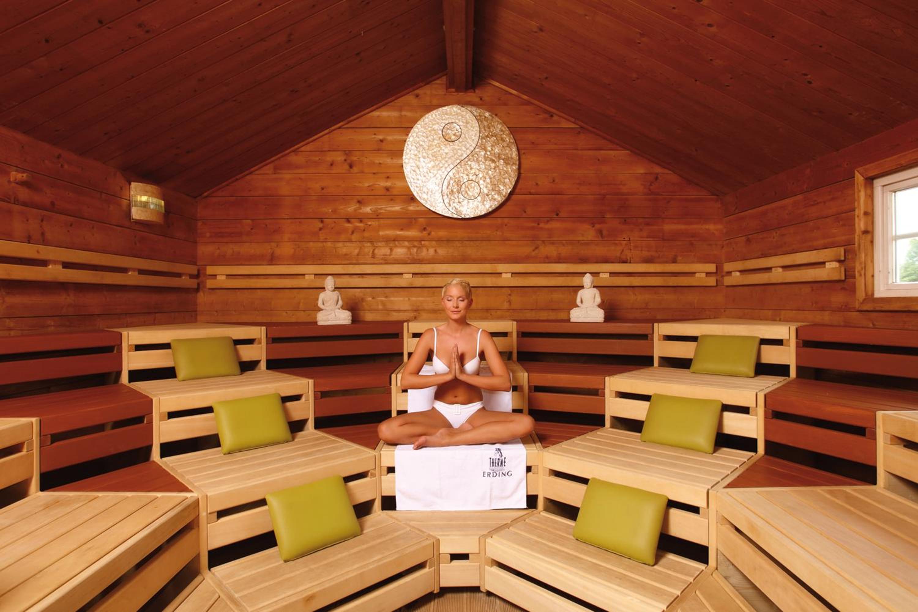 Guests can indulge in the world's largest spa center, Therme Erding, with access to a 1000 m² wave pool, 30 saunas, VitalityOasis, and 27 slides for a relaxing or adventurous spa experience.