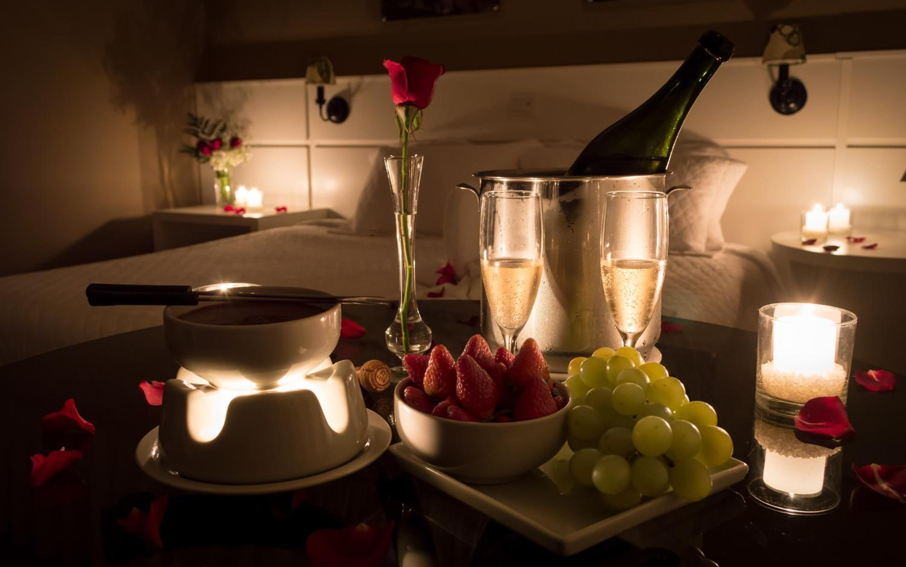 Área externa, quarto, café da manhã