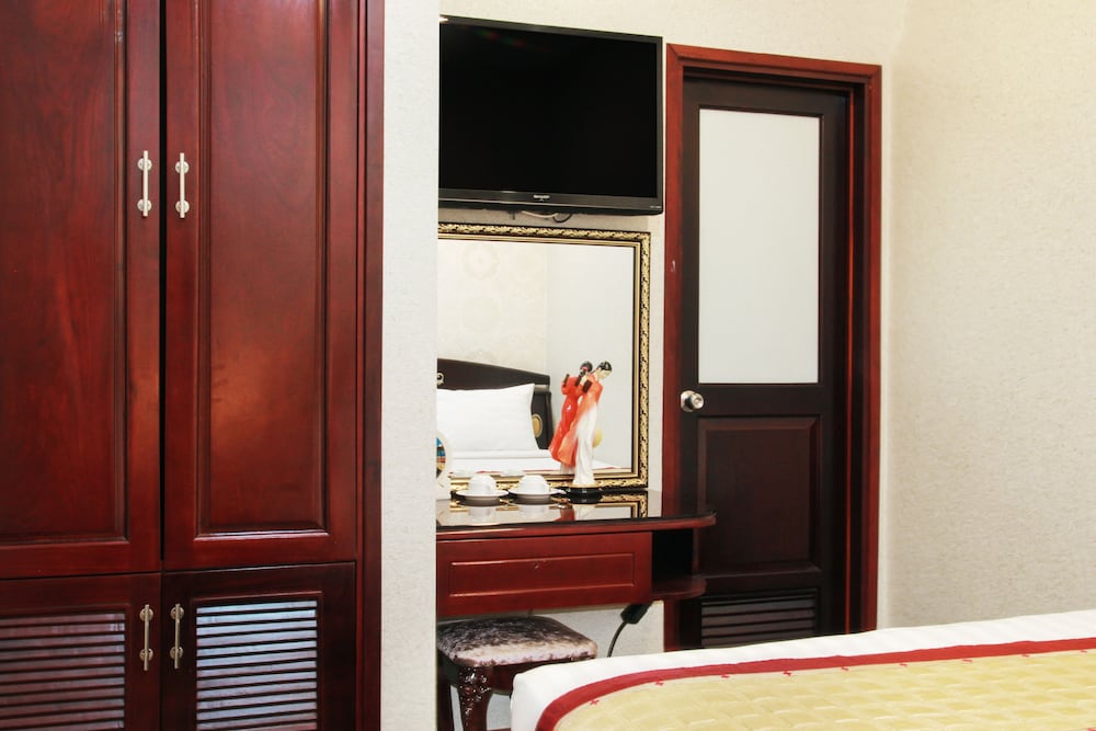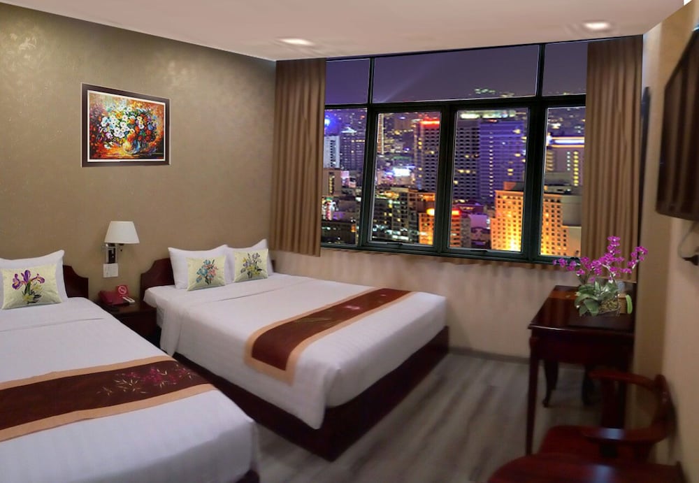The hotel was the worst I have stayed in. Booked a city view and ended up with a view of the back of the hotel sign. Room should have been non smoking and smelt very strongly of smoke. 4 plug sockets had not electricity and the bedside lamps did not work for the same reason. They brought an extension lead so that we could boil the kettle on the floor at the end of the bed and said that they could not move is as they were full. Completely untrue as we were moved the following morning at 8.30am to a room that we had seen empty at 6pm the previous evening. No one had stayed there! We lost the plastic hotel card for the door and they charged us £6 (equivalent) for a new one despite the inconvenience we had been out to the previous night. They just did not care. Terrible place and could not wait to leave to stay in another hotel in Ho Chi Minh City for the rest of our stay. The photos slow are what we thought we were booking to what we actually were given. Avoid.