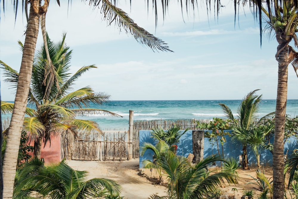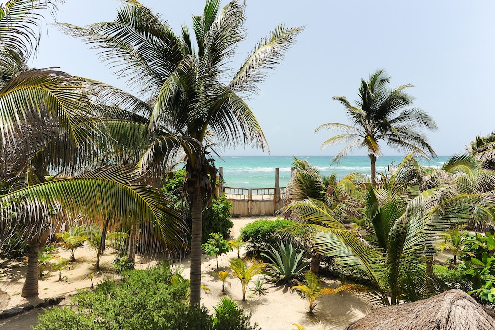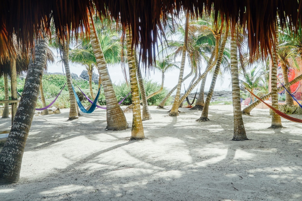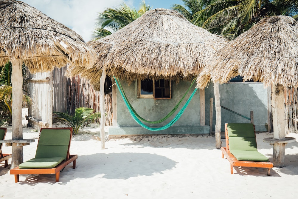 The beach is way smaller than it looks in the photos (which means if there’s sargasson you can’t really get in the sea) and it’s right by the road. This meant we ended up paying to use a different beach. For that reason I think the price is a bit high, there are better value hotels in the north end of Tulum (part of the national park) with proper beaches.